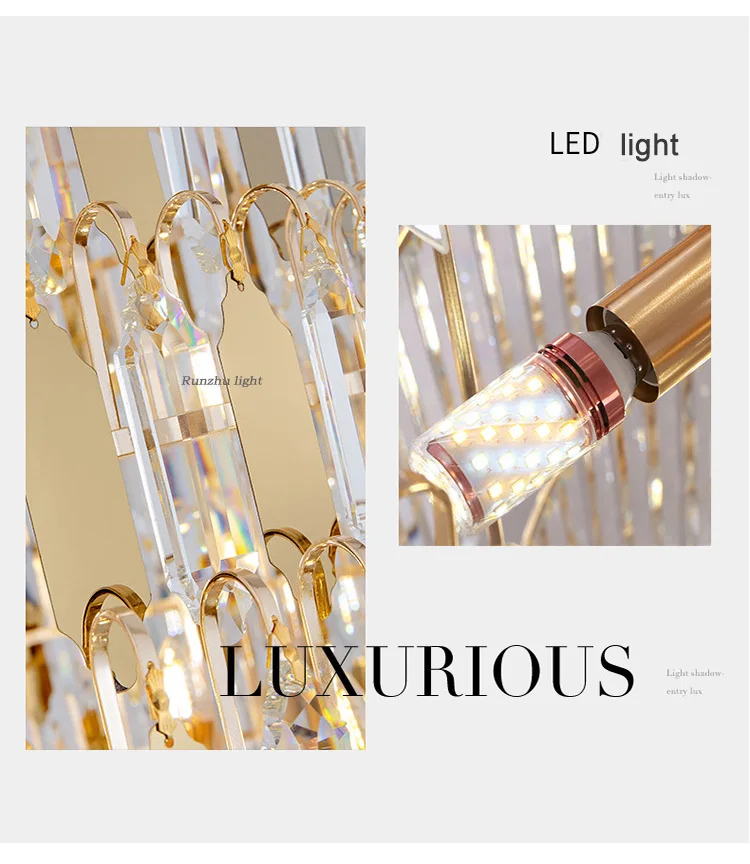 1.Name:Luxury Crystal Chandelier Villa Duplex Staircase Living Room Ceiling Pendant Lights Modern Home Decoration New Led Gloss Lamps ;