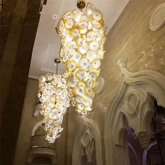 Luxury Large Gold Flower Chandelier Light with Murano Glass Plates for Villa LED Indoor Hanging Light Fixture