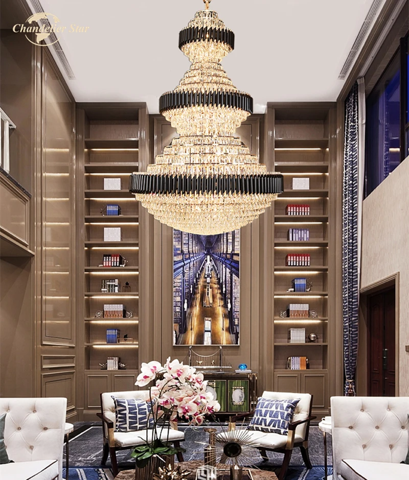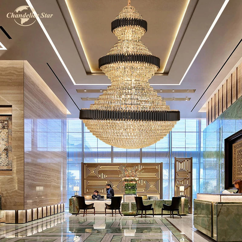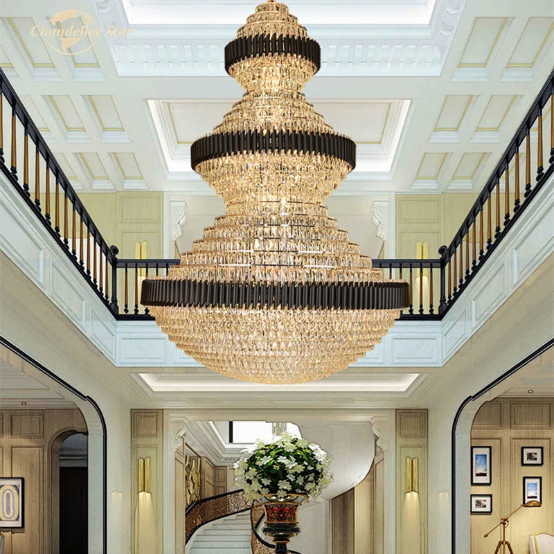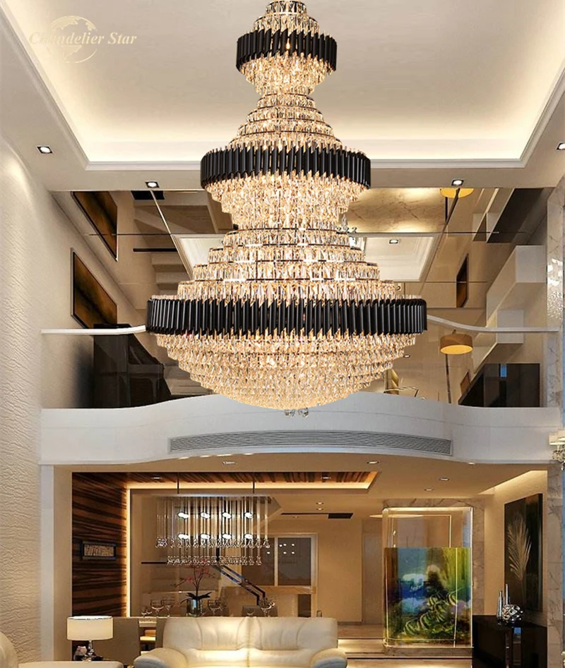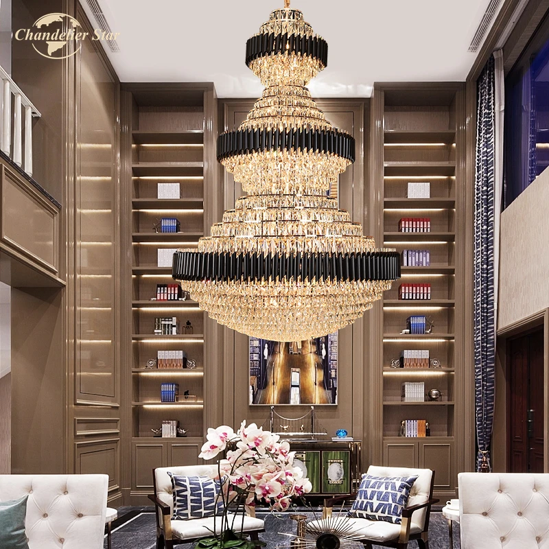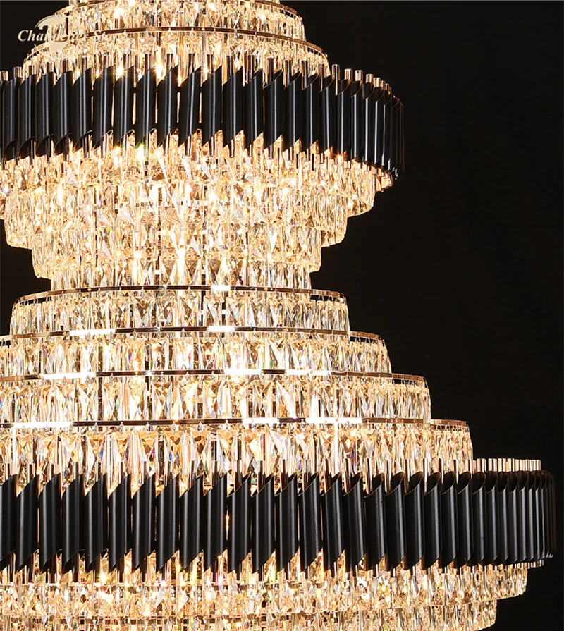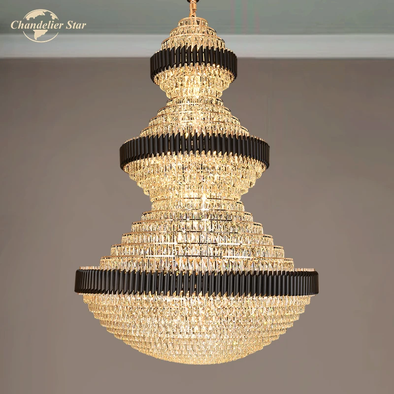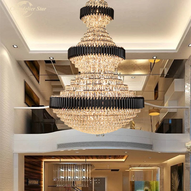 Luxury LED Chandeliers Lighting Modern Crystal Metal Black Lamps Lustre Home Decoration Living Room Staircase Hotel Villa Lights