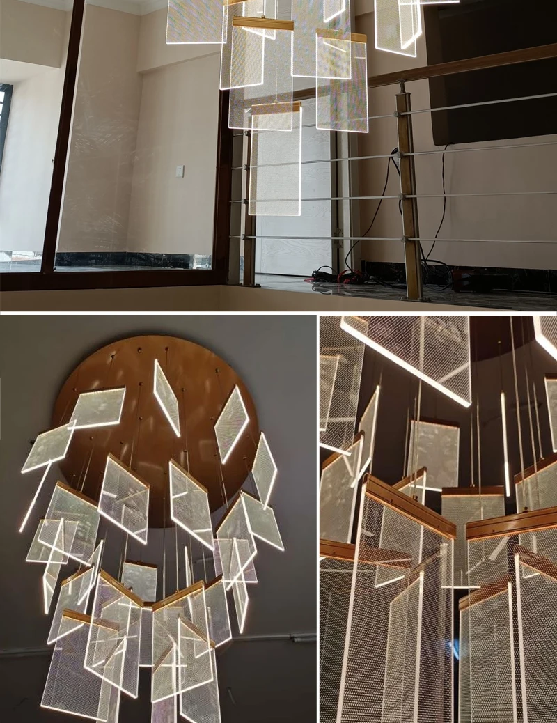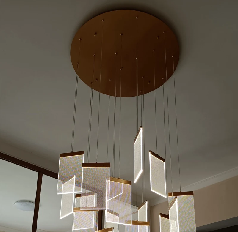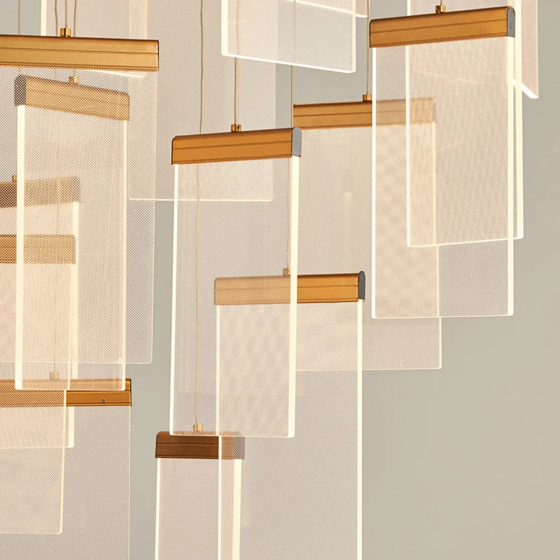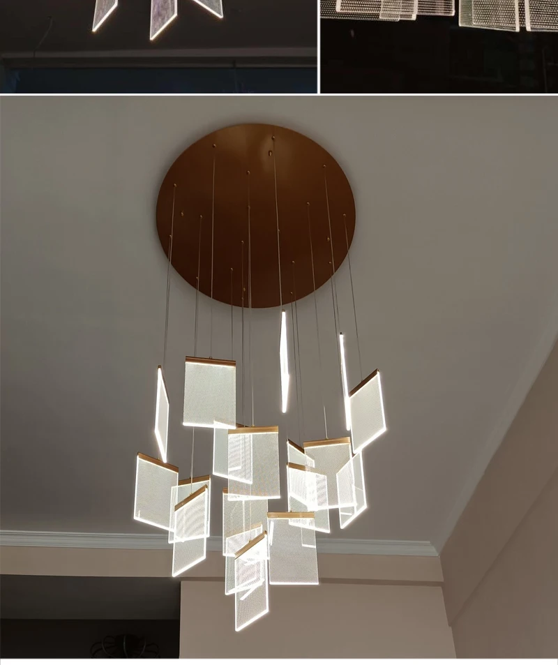 Luxury Modern Led Chandelier For Staircase New Creative Design Hallway Villa Gold Hanging Lighting Long Acrylic Indoor Home Lamp
