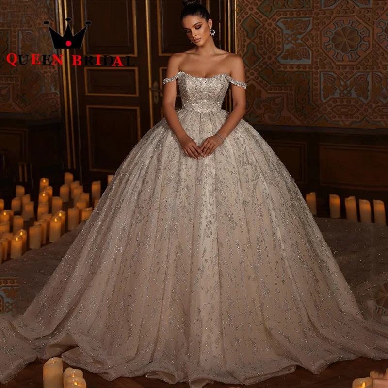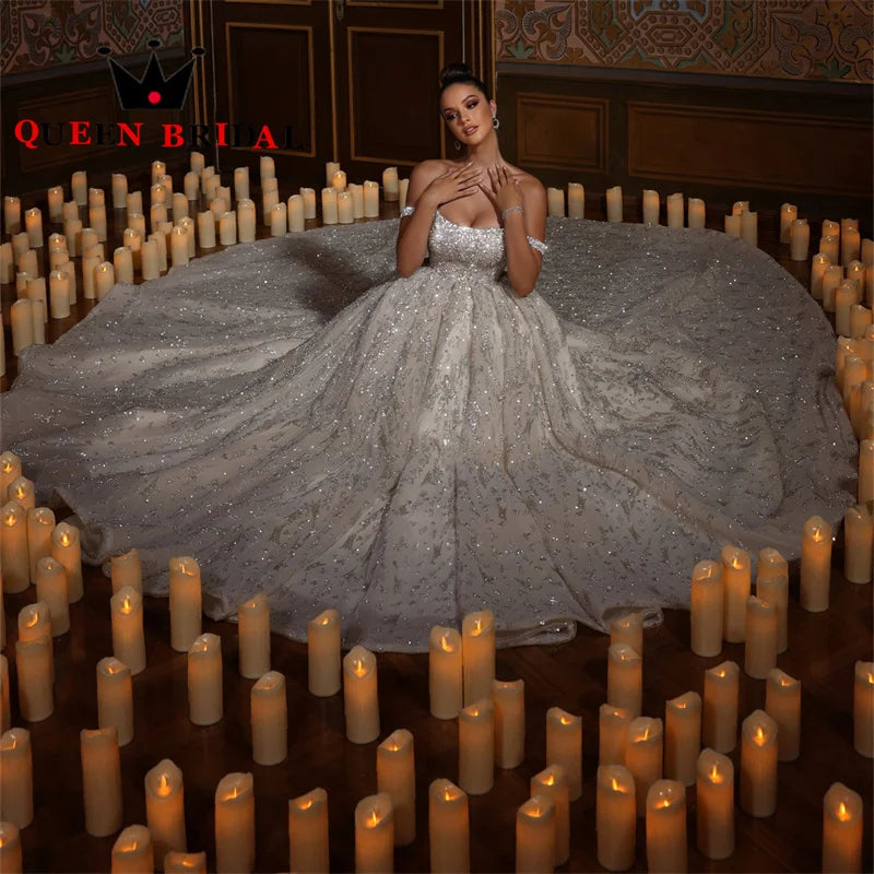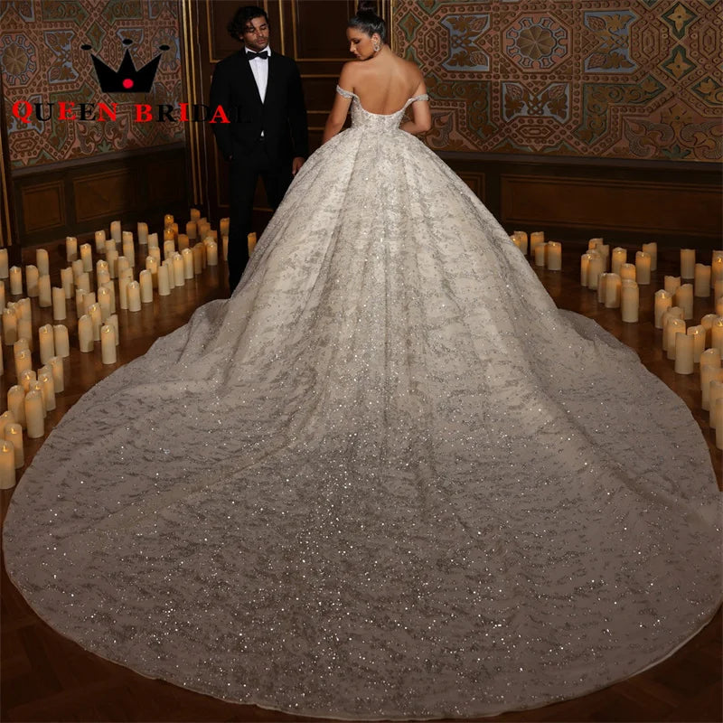 Luxury Sequined Lace Wedding Dresses Off The Shoulder Backless Floor-Length Bridal Ball Gowns Robe De Mariée Custom Y75X
