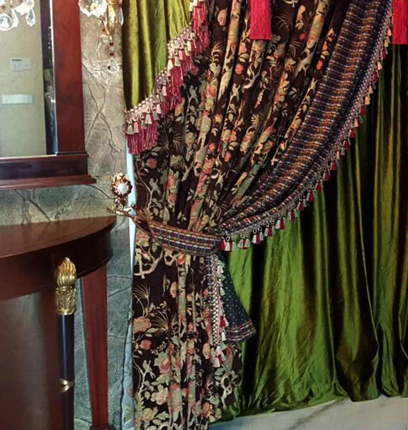 Luxury Valance Curtains in the Living room Secret Garden Luxurious Villa Window Green Palace Drape Hotel Curtain for Bedroom