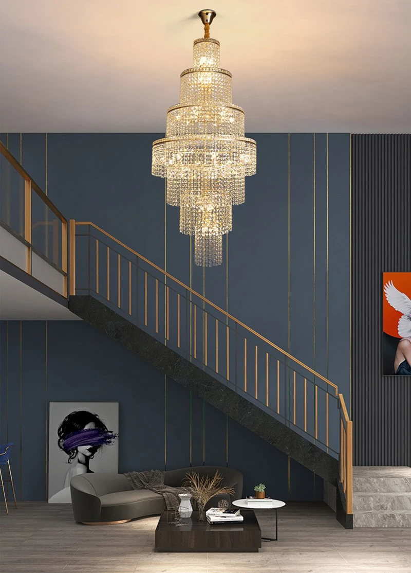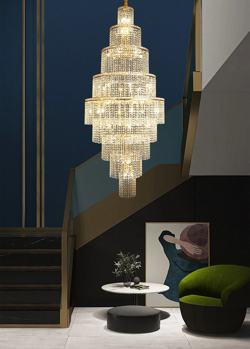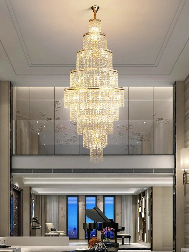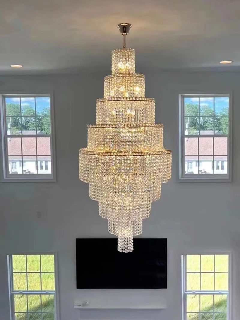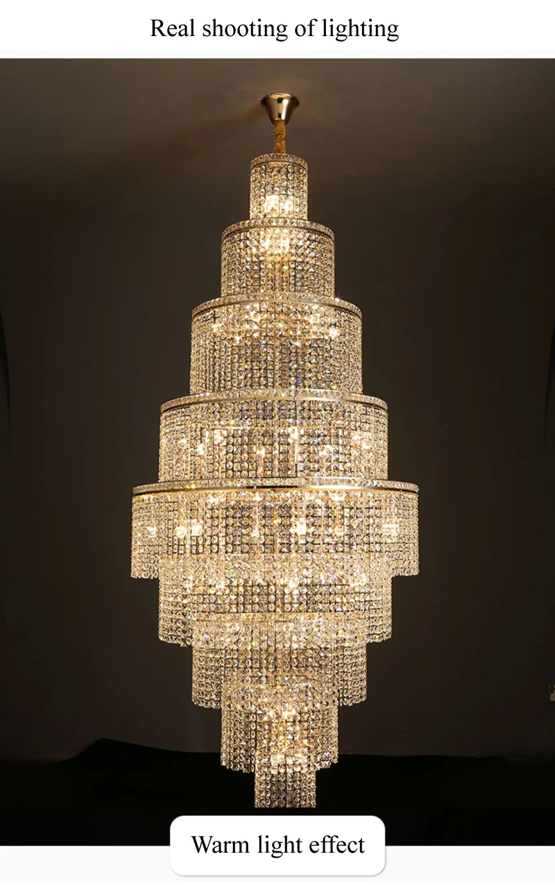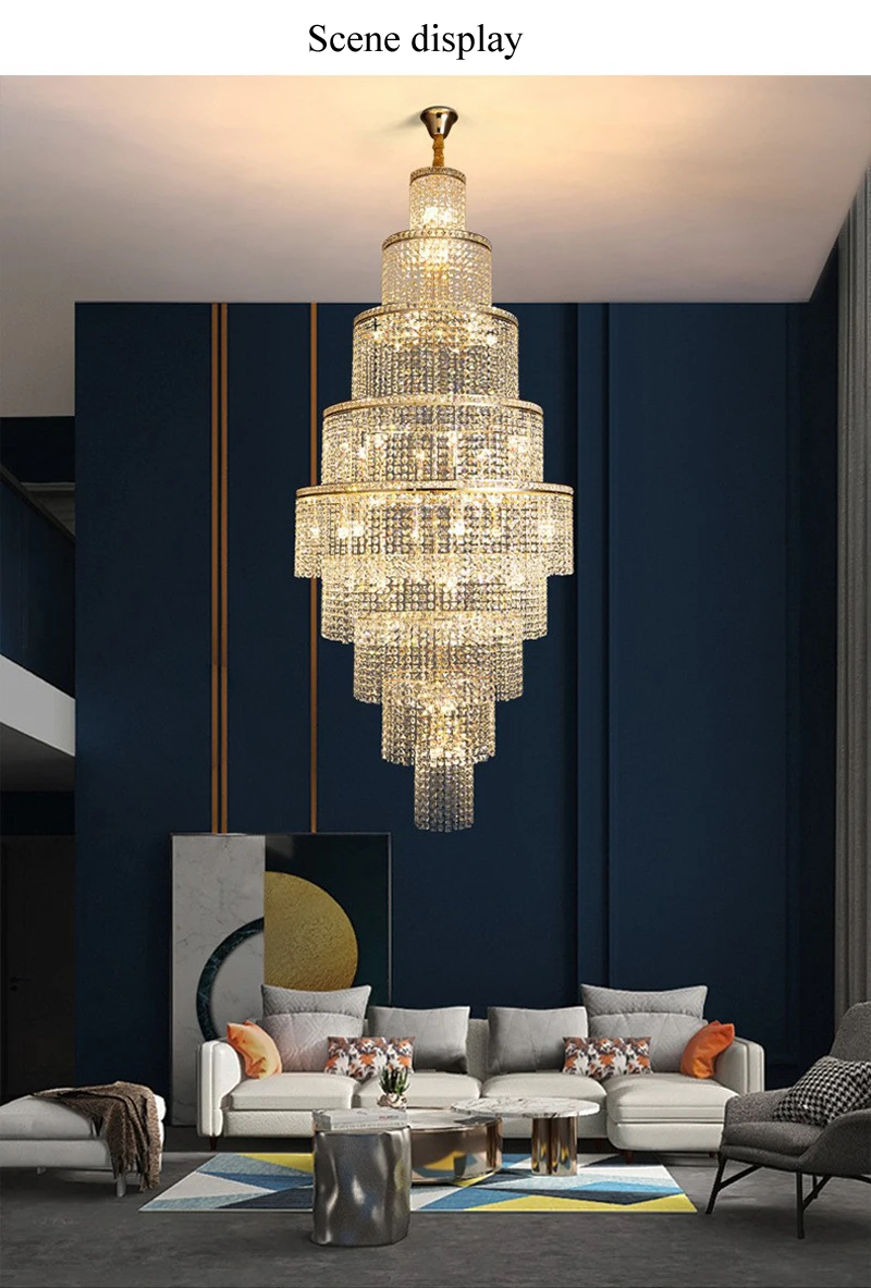 Luxury Villa Hotel Hall Crystal Chandelier Lighting Modern LED Living Room Pendant Lamp Dining Room Stairs Decoration Chandelier