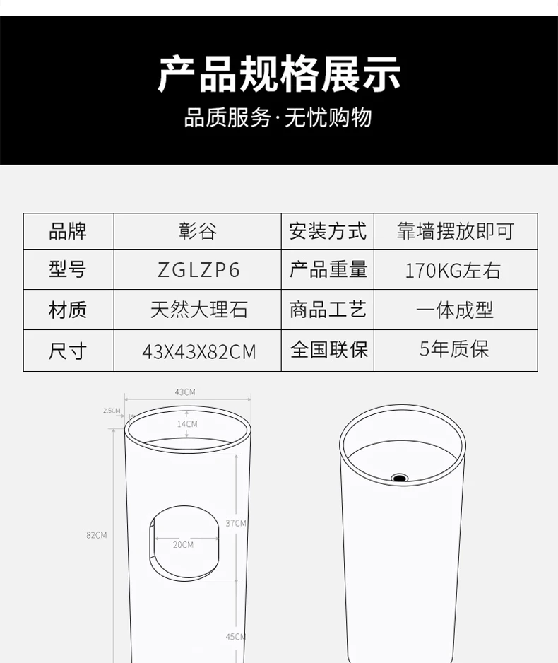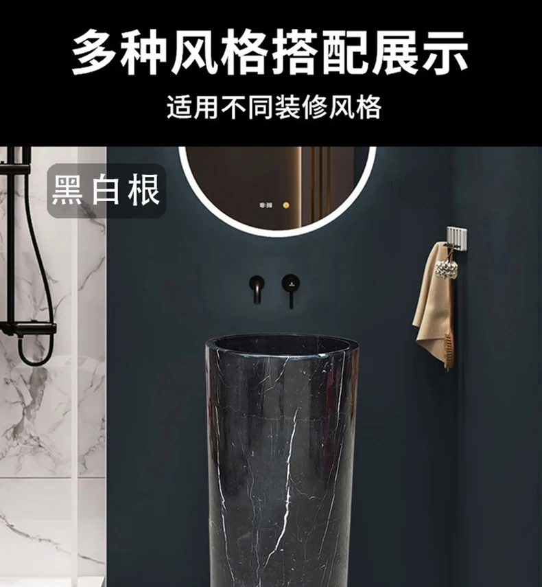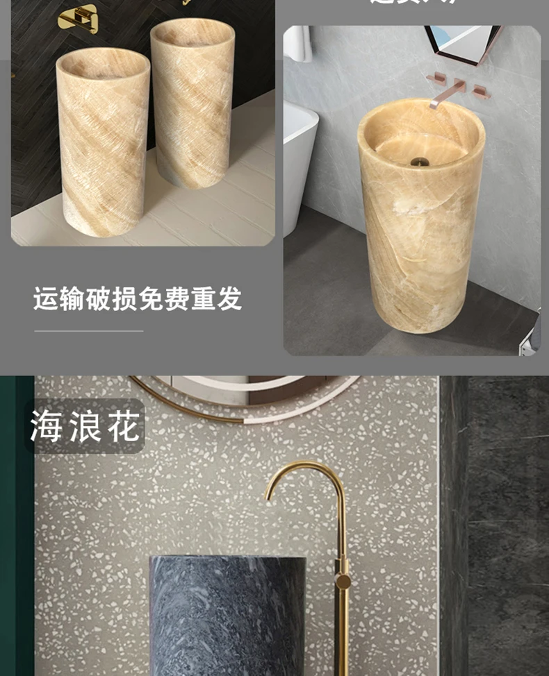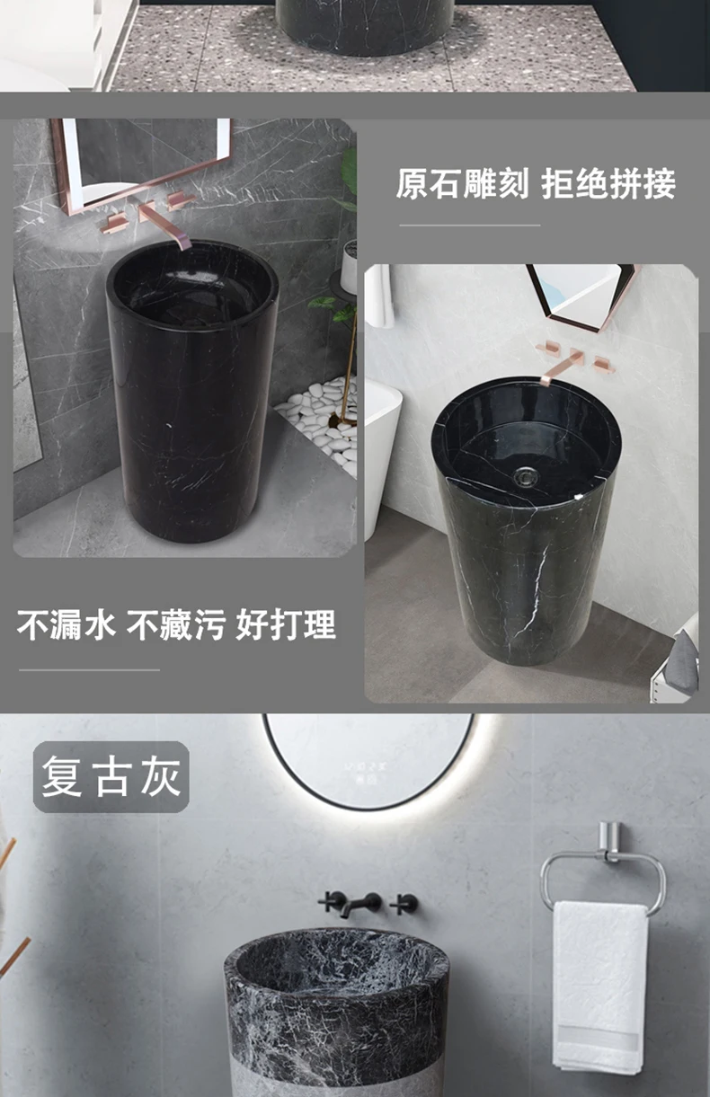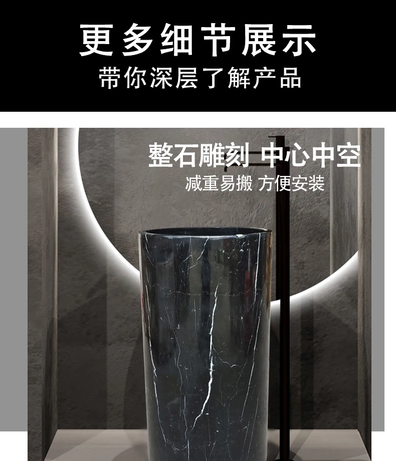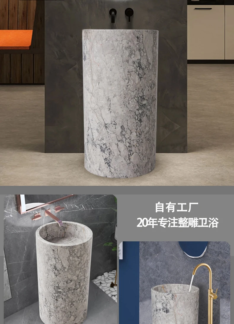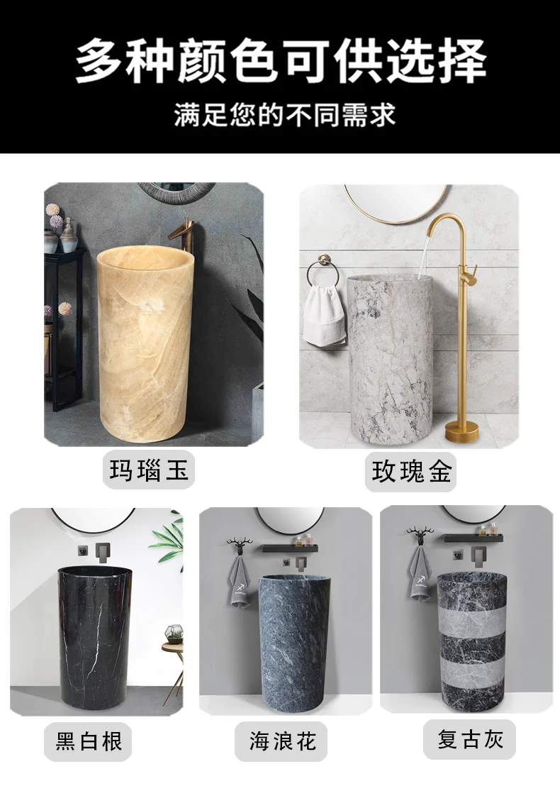Marble integrated floor standing column basin, circular art washbasin, hotel column style washbasin