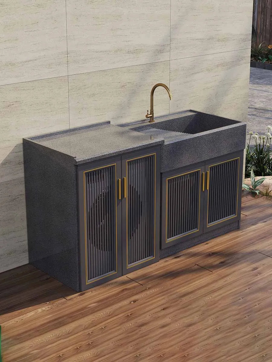 Marble laundry sink, basin with washboard, outdoor stone washbasin, courtyard, outdoor laundry cabinet, integrated sink