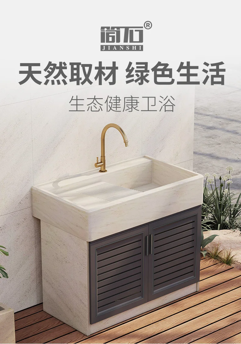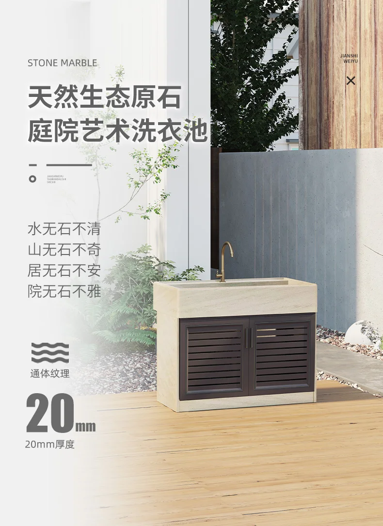 Marble laundry sink with washboard integrated sink, garden outdoor laundry table, home courtyard sink, basin customization