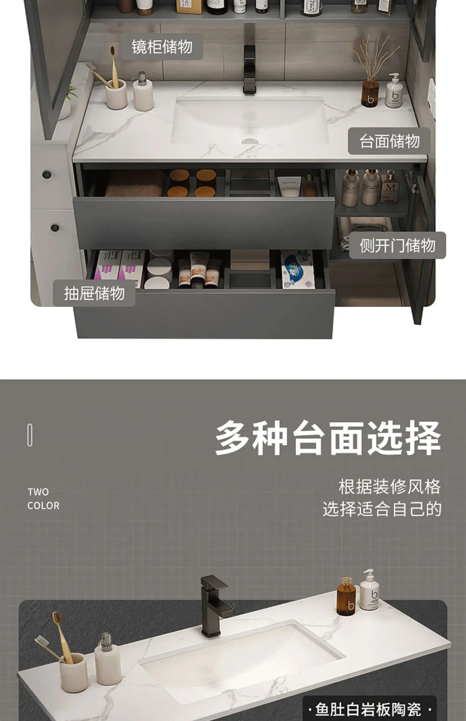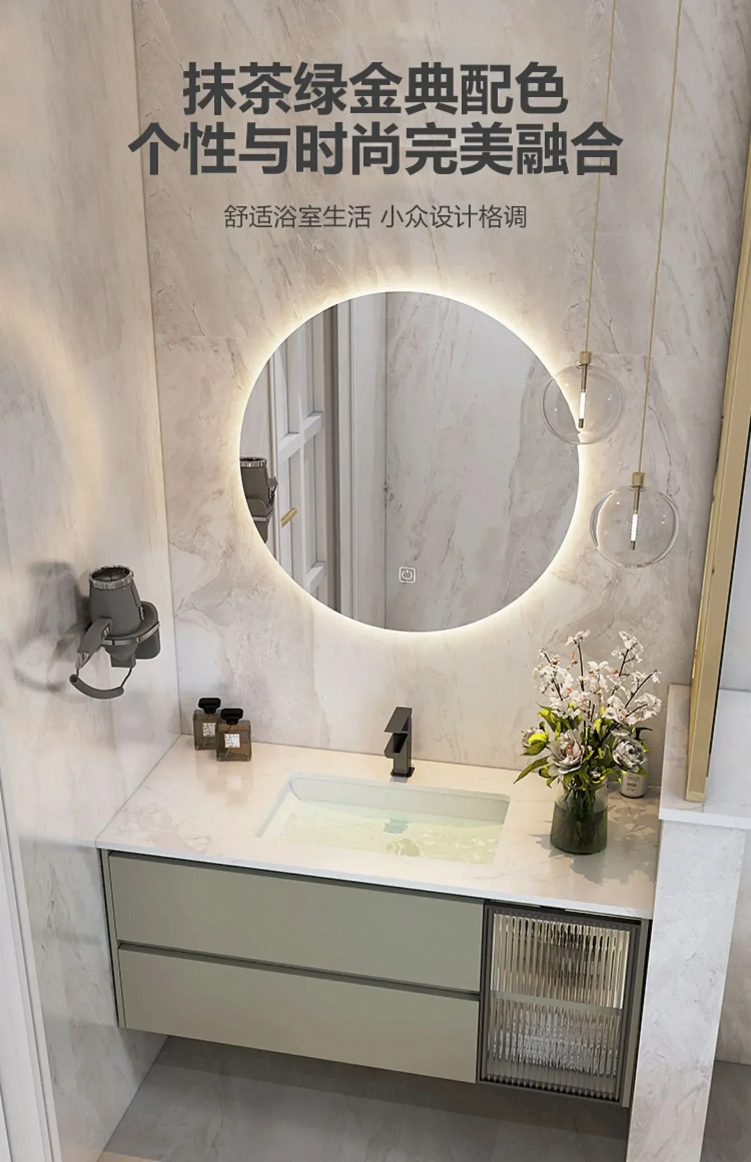 MMOOKA Marble Smart Bathroom Vanity Cabinet With Sink And Mirror Looking Combination One Hand Wash Basin Washbasin Toilet Round Mirror