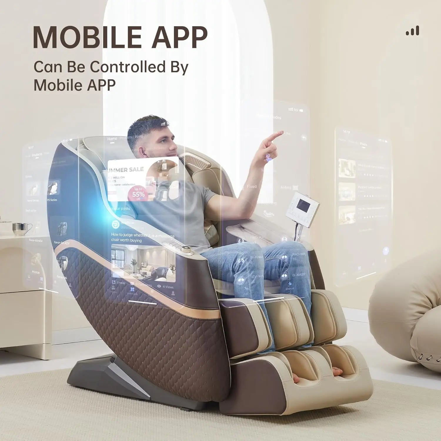 Massage Chair, SL Track Full Body Zero Gravity Massage Recliner with Yoga Stretch APP Control, Favor 07 Brown