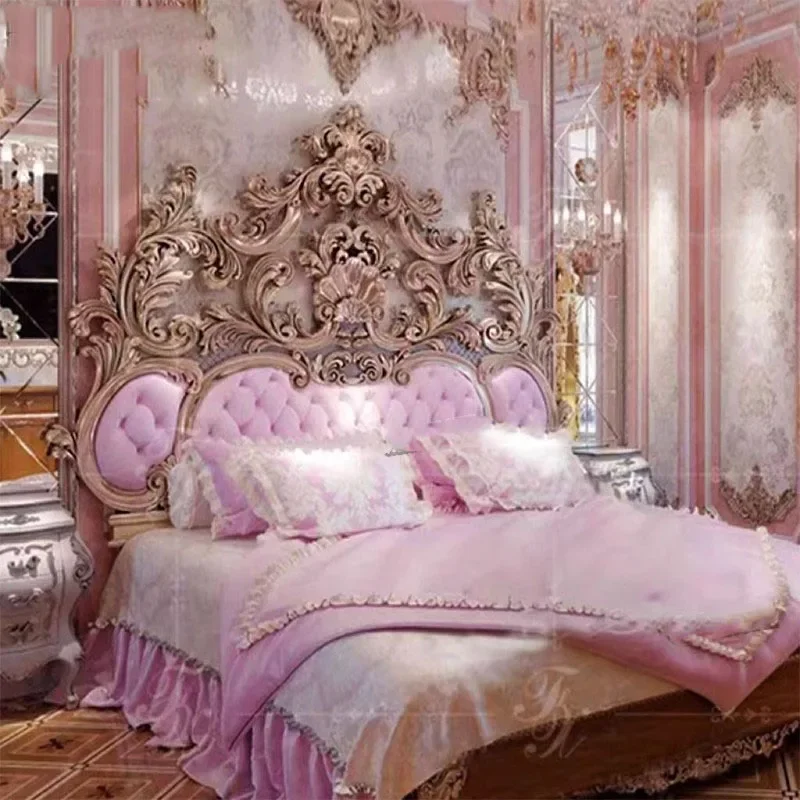 Master Modern Bed Large Princess Hand Carved Girl Bedding Queen Bed Double Luxury Floor Cama Matrimonial Nordic