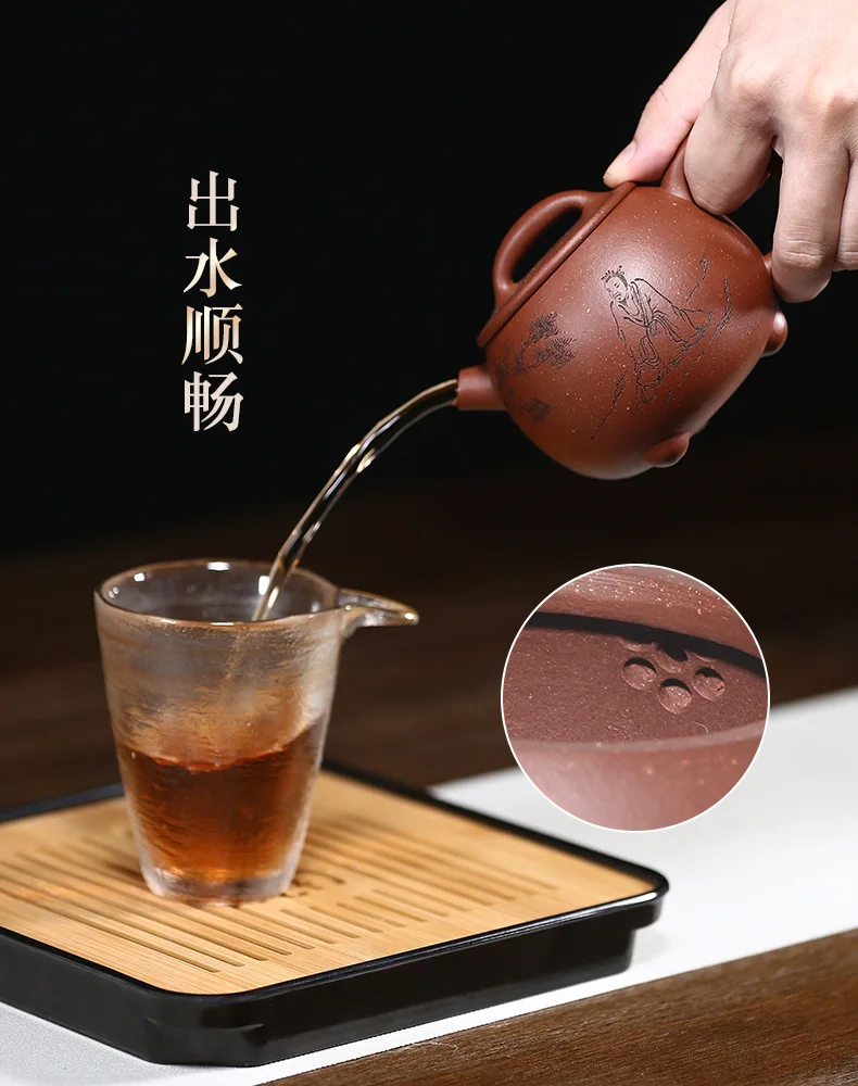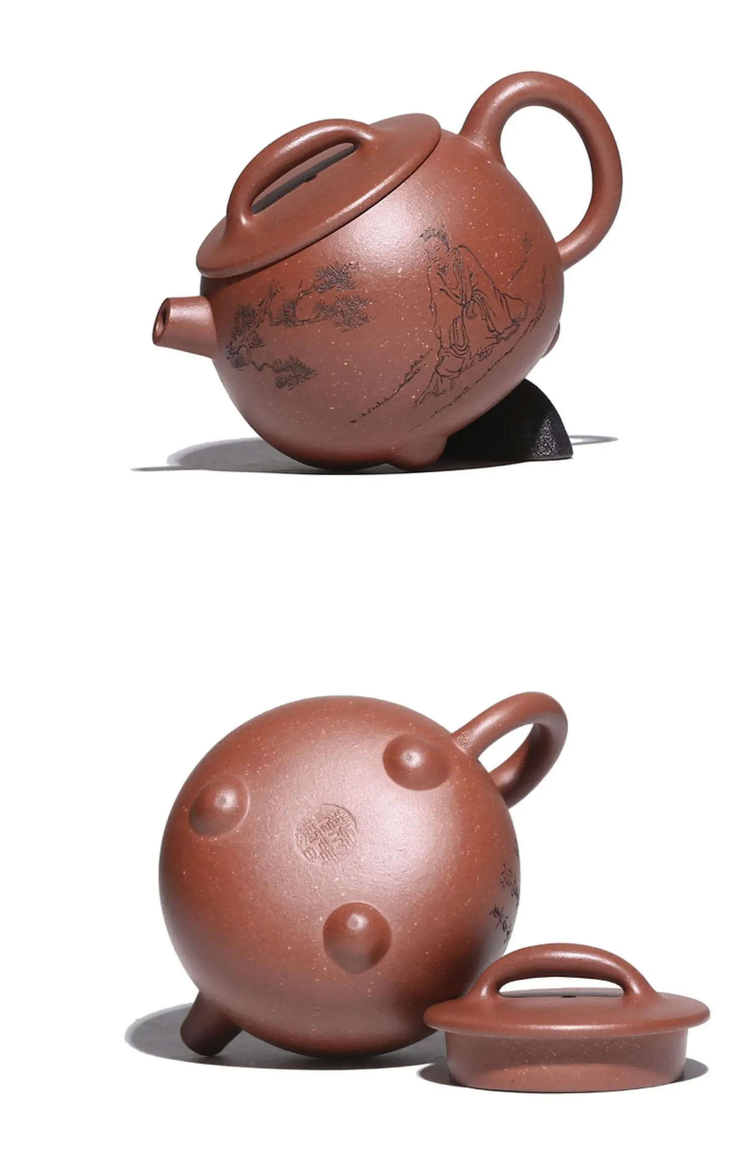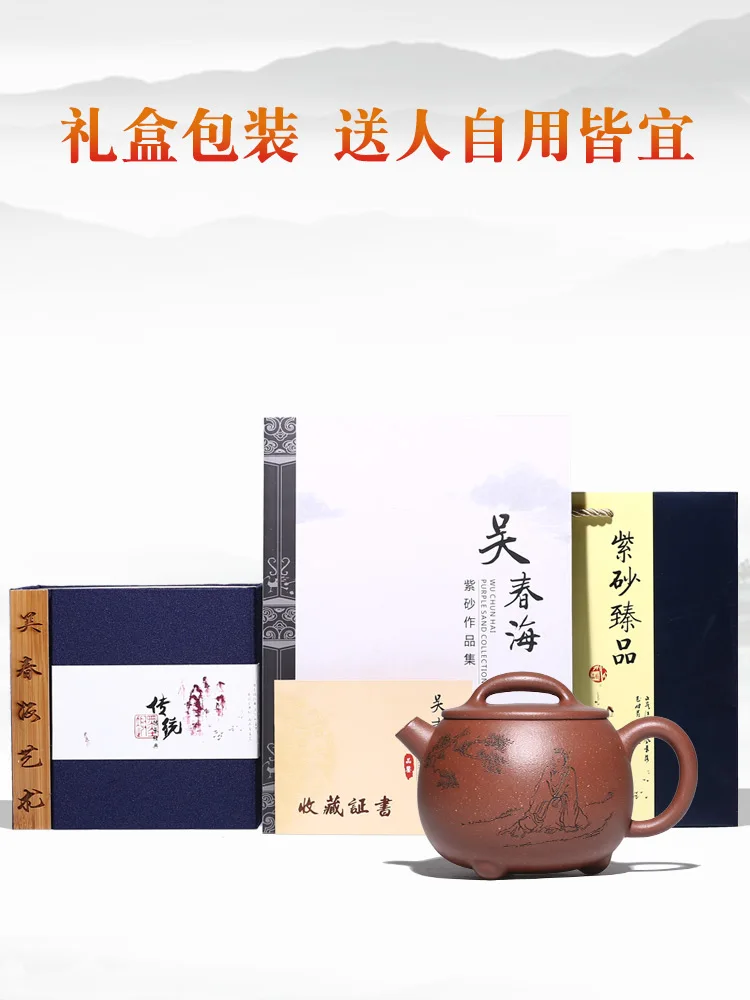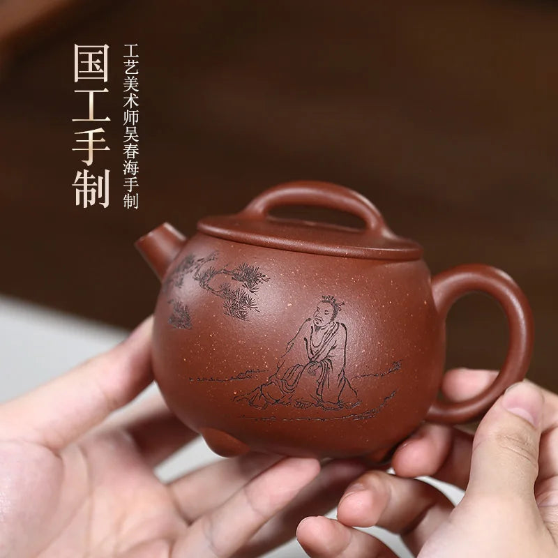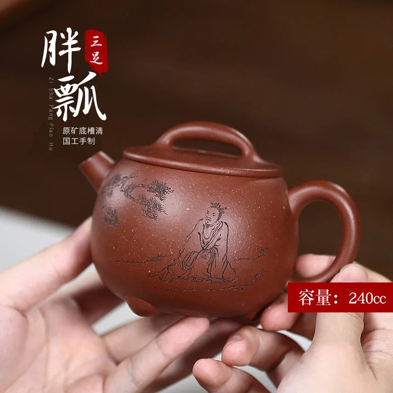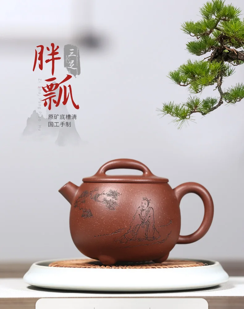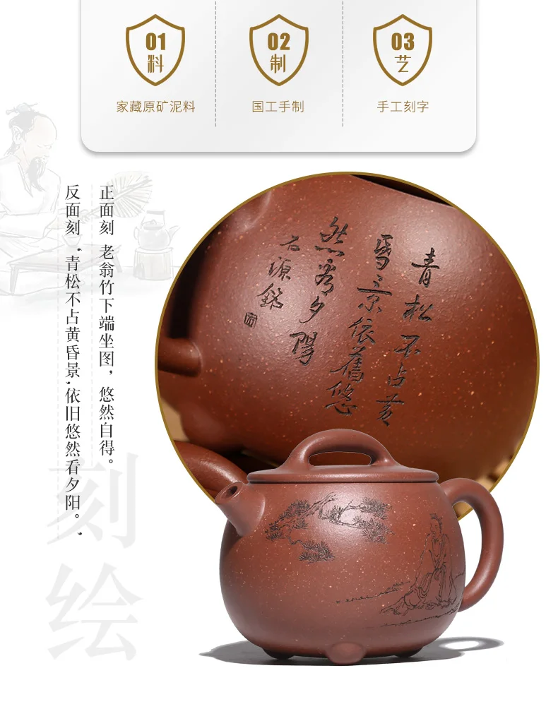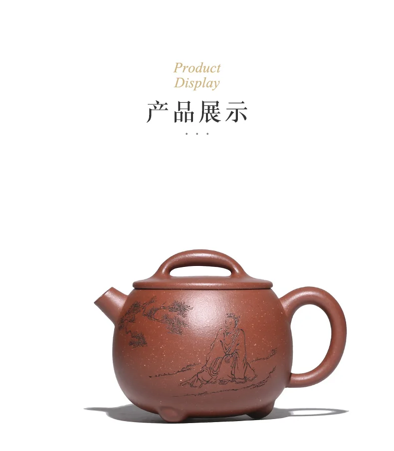 |masters art yixing recommended pure manual teapot kung fu tea set carved painting masters three-legged ladle pot of fat