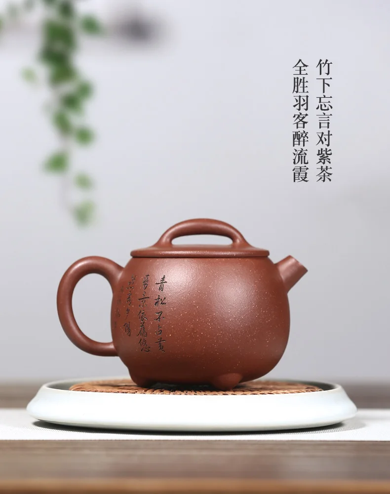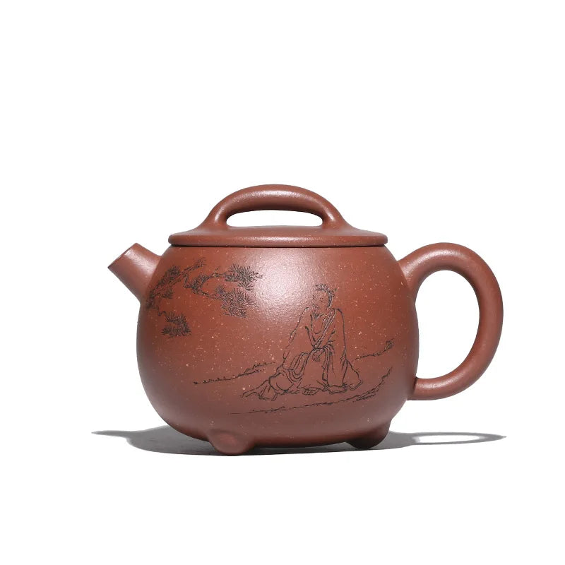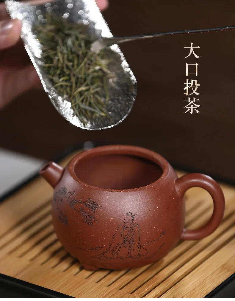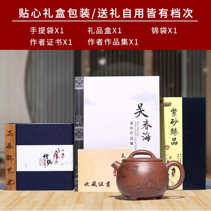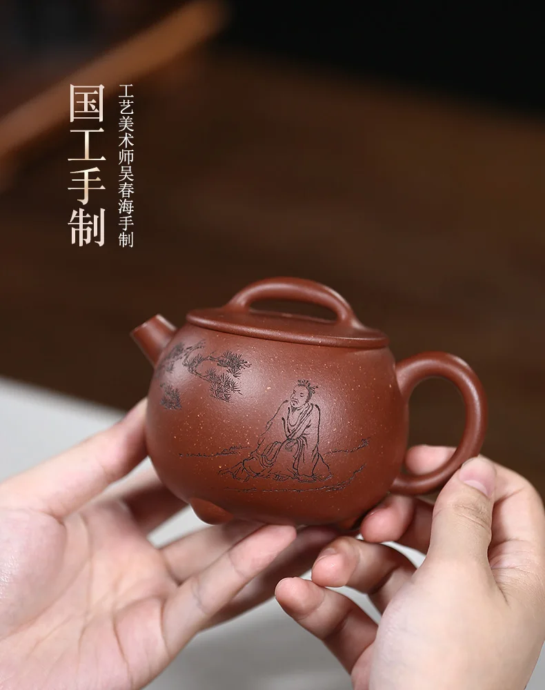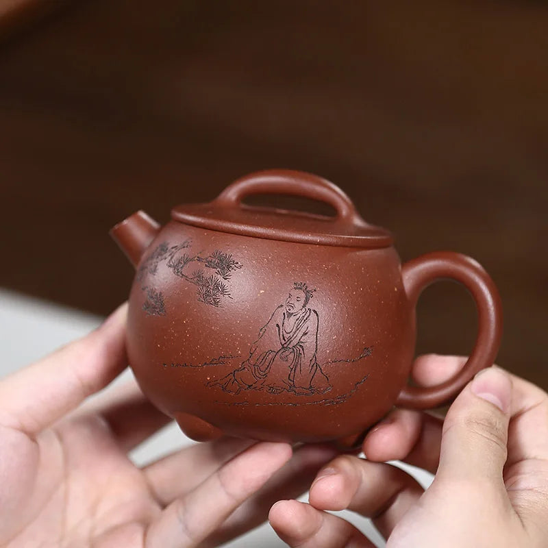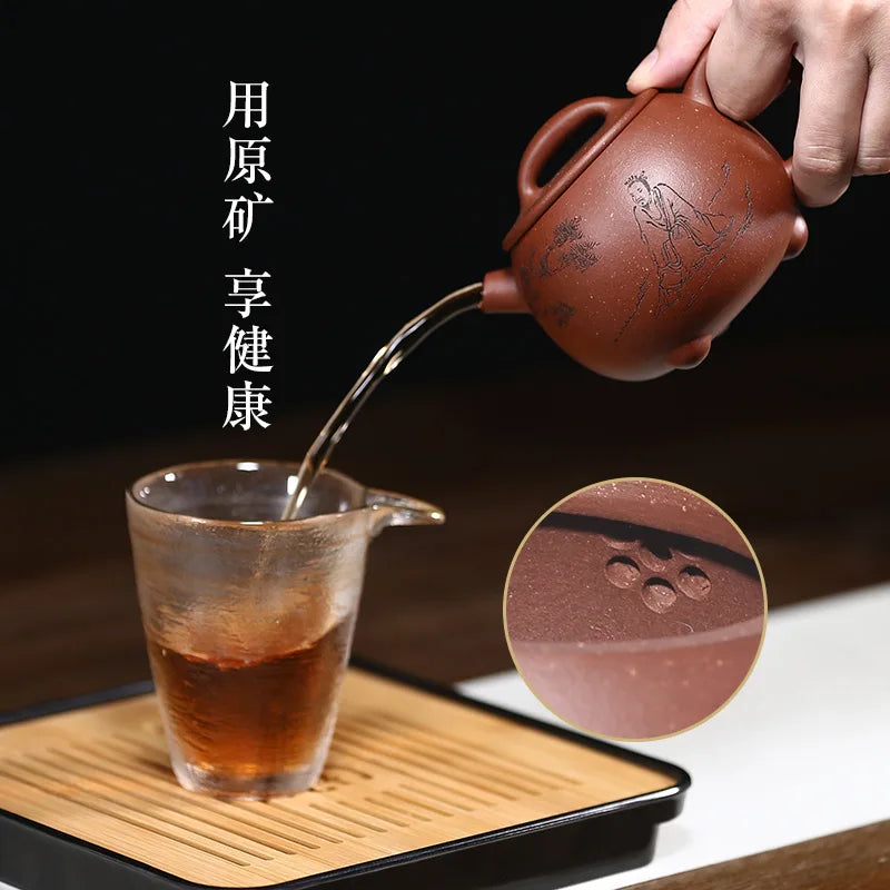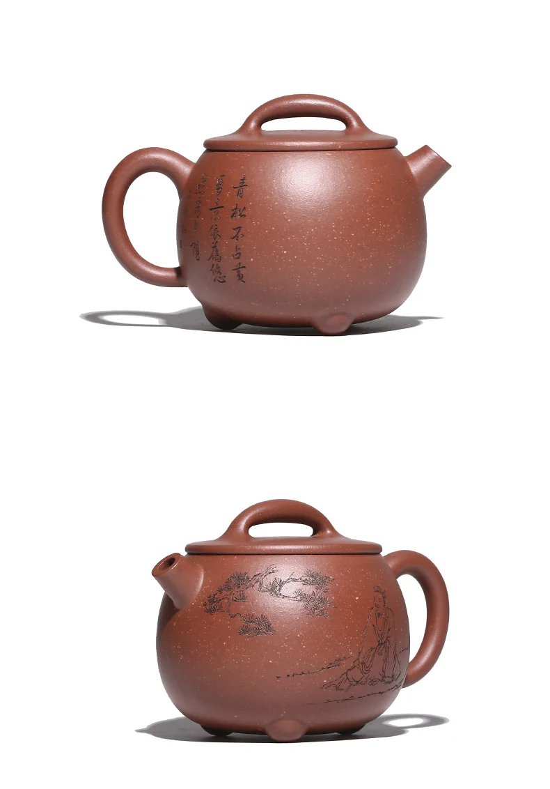 |masters art yixing recommended pure manual teapot kung fu tea set carved painting masters three-legged ladle pot of fat