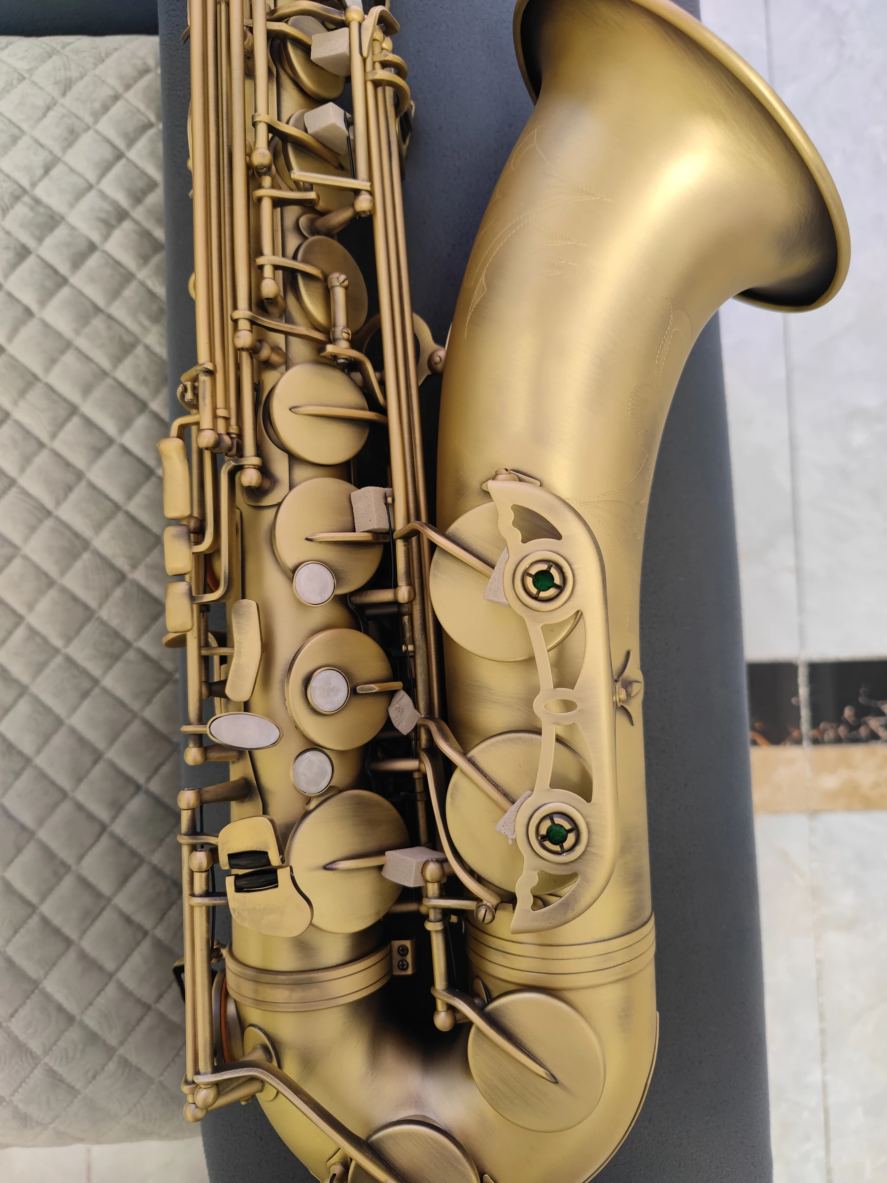 The classic matte 54 tenor saxophone has a beautiful sound and a pleasant energetic feel. Upgrade the frosted antique copper to show the taste and connotation. The tube body is hand-carved, with fine workmanship, exquisite patterns and no flaws.