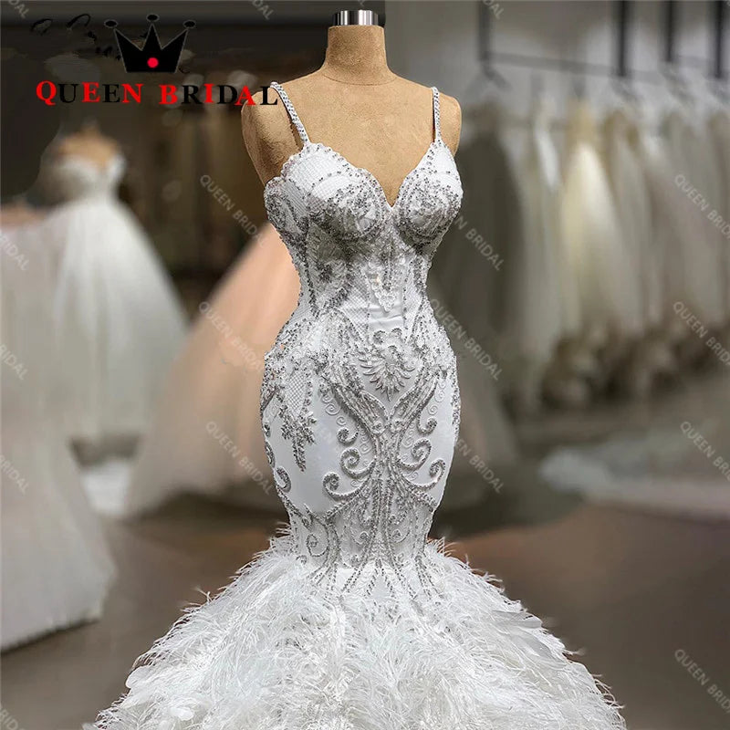 Mermaid Sequined Beading Pearls Wedding Dresses Exquisite Sleeveless Spaghetti Straps Bridal Gowns Robe De Mariée Custom Y47X