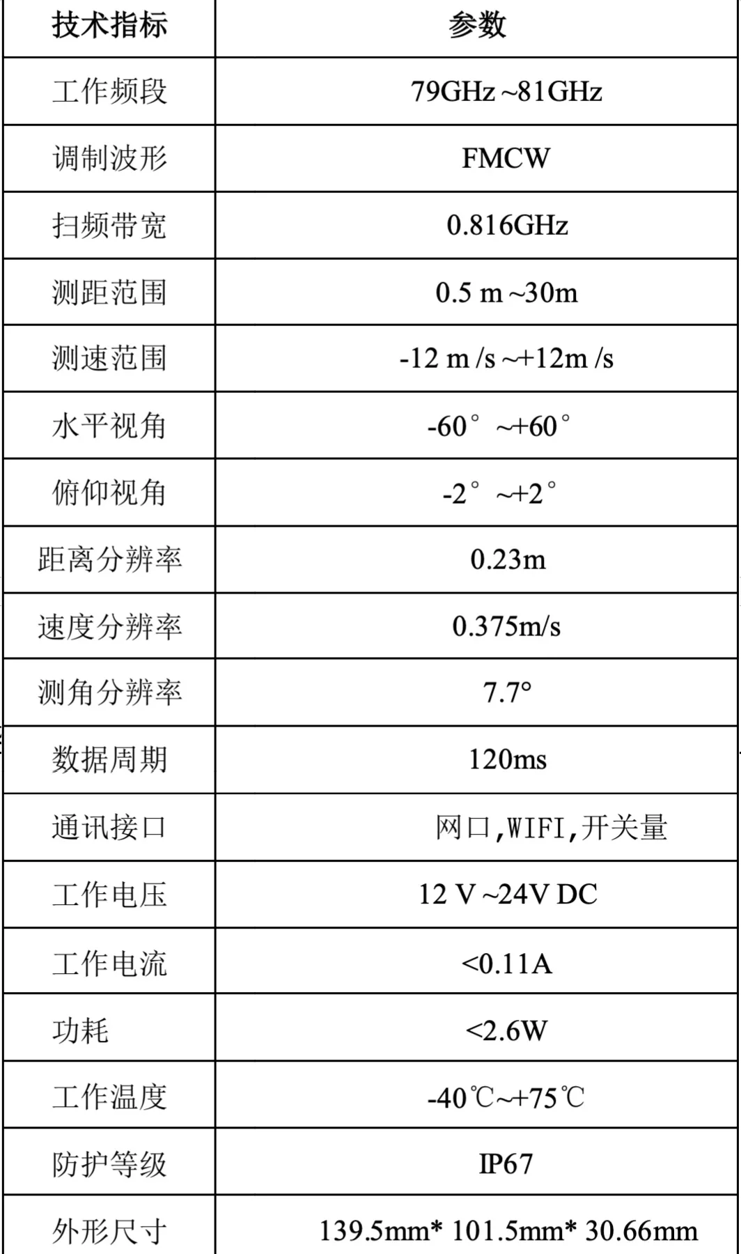 The main features of the XW-BZ-RD301 millimeter wave obstacle avoidance radar: