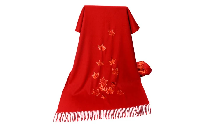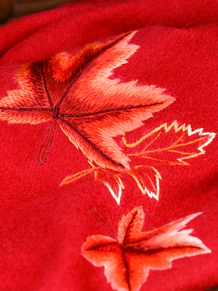 Minggu Embroidery 2021 New Autumn and Winter Handmade Su Embroidered Cashmere Shawl Versatile Double sided Embroidered Maple Lea