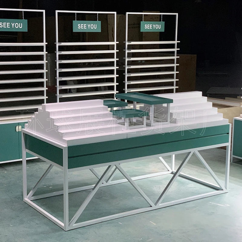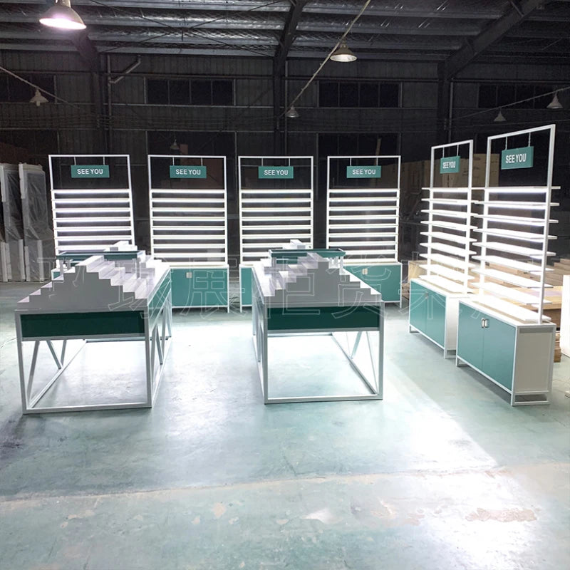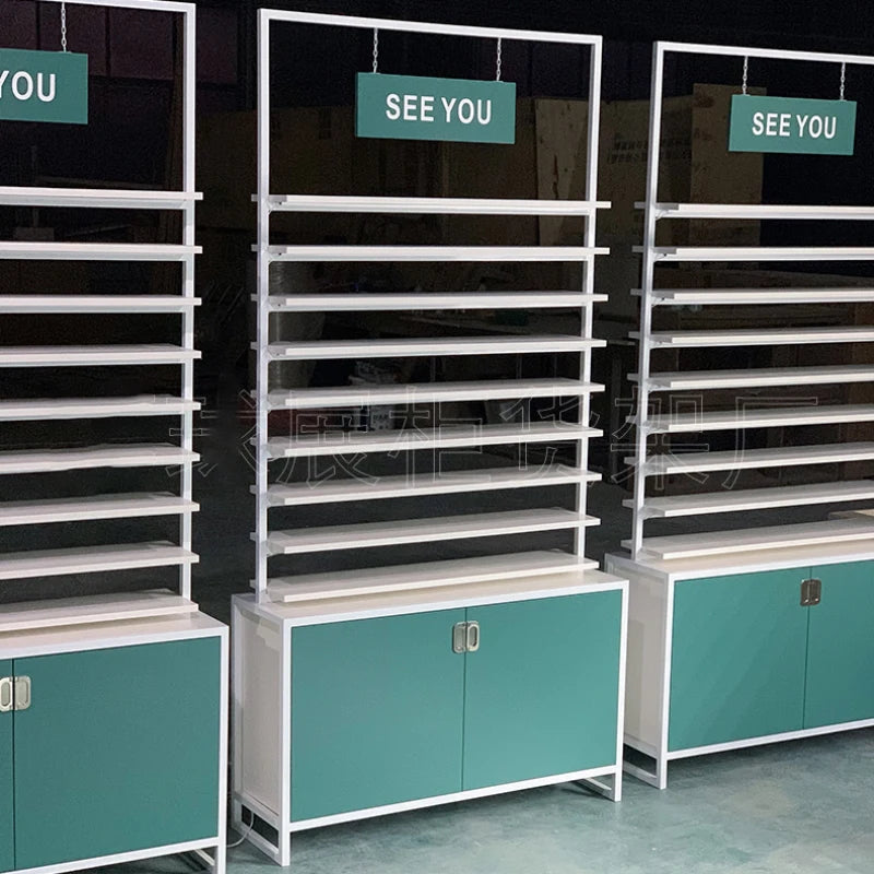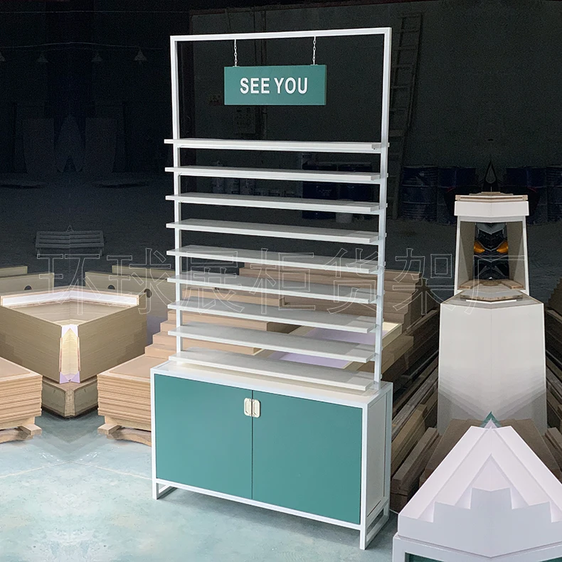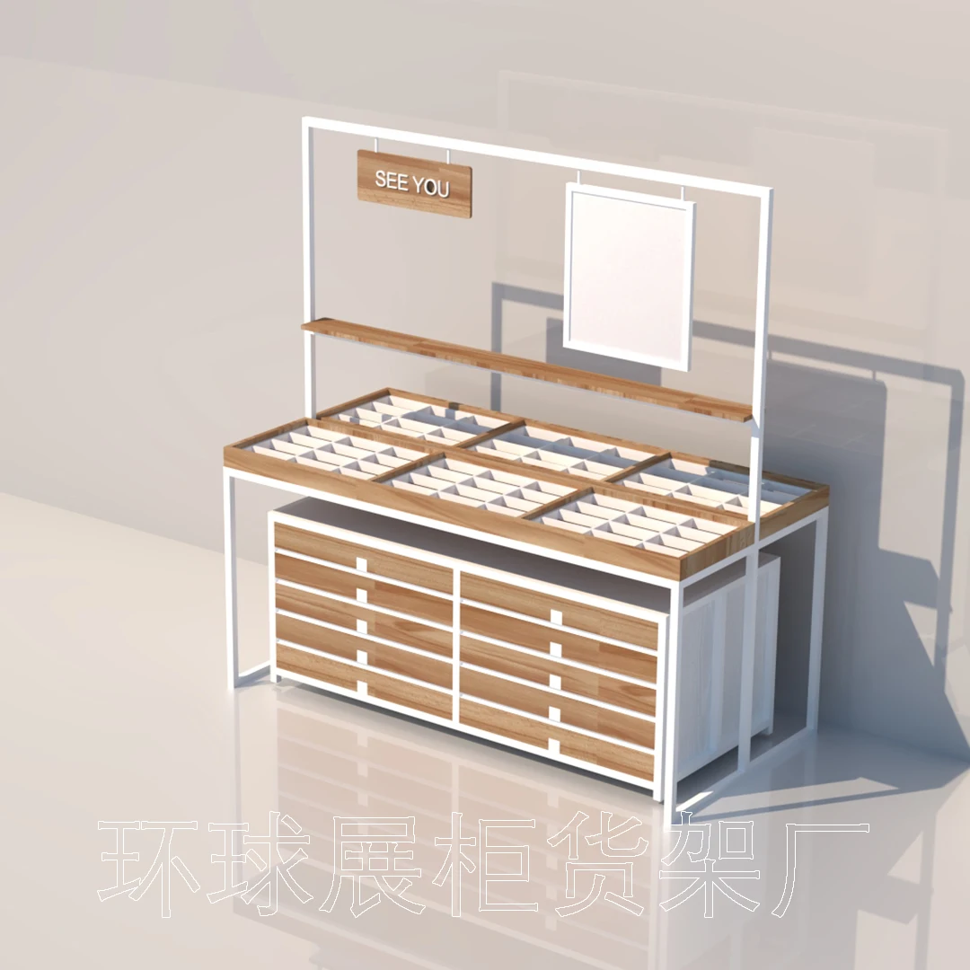 Minimal design, no installation of solid wood ecological board, iron art glasses display, high cabinet, medium island, multi-lay