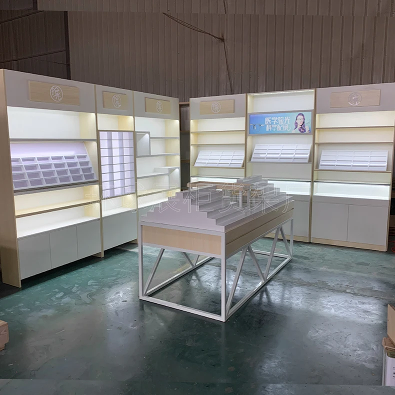 Minimal log style no-painted eco-board glasses display high cabinet shelf counter no-painted glass made to order in the whole st