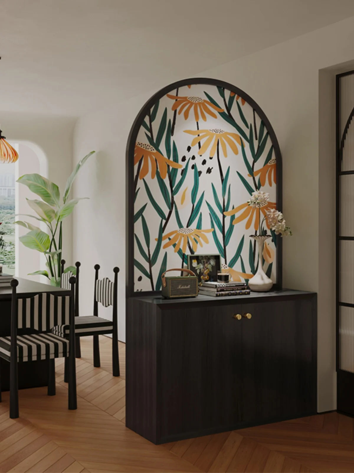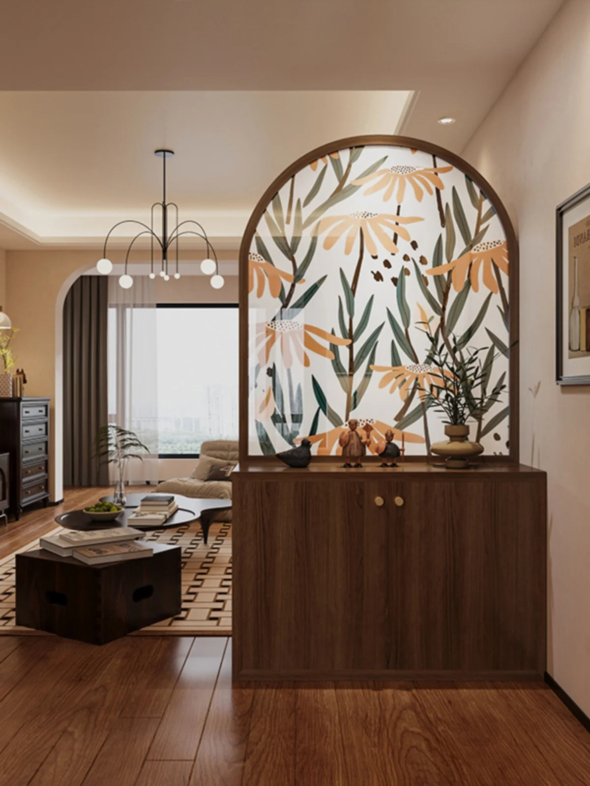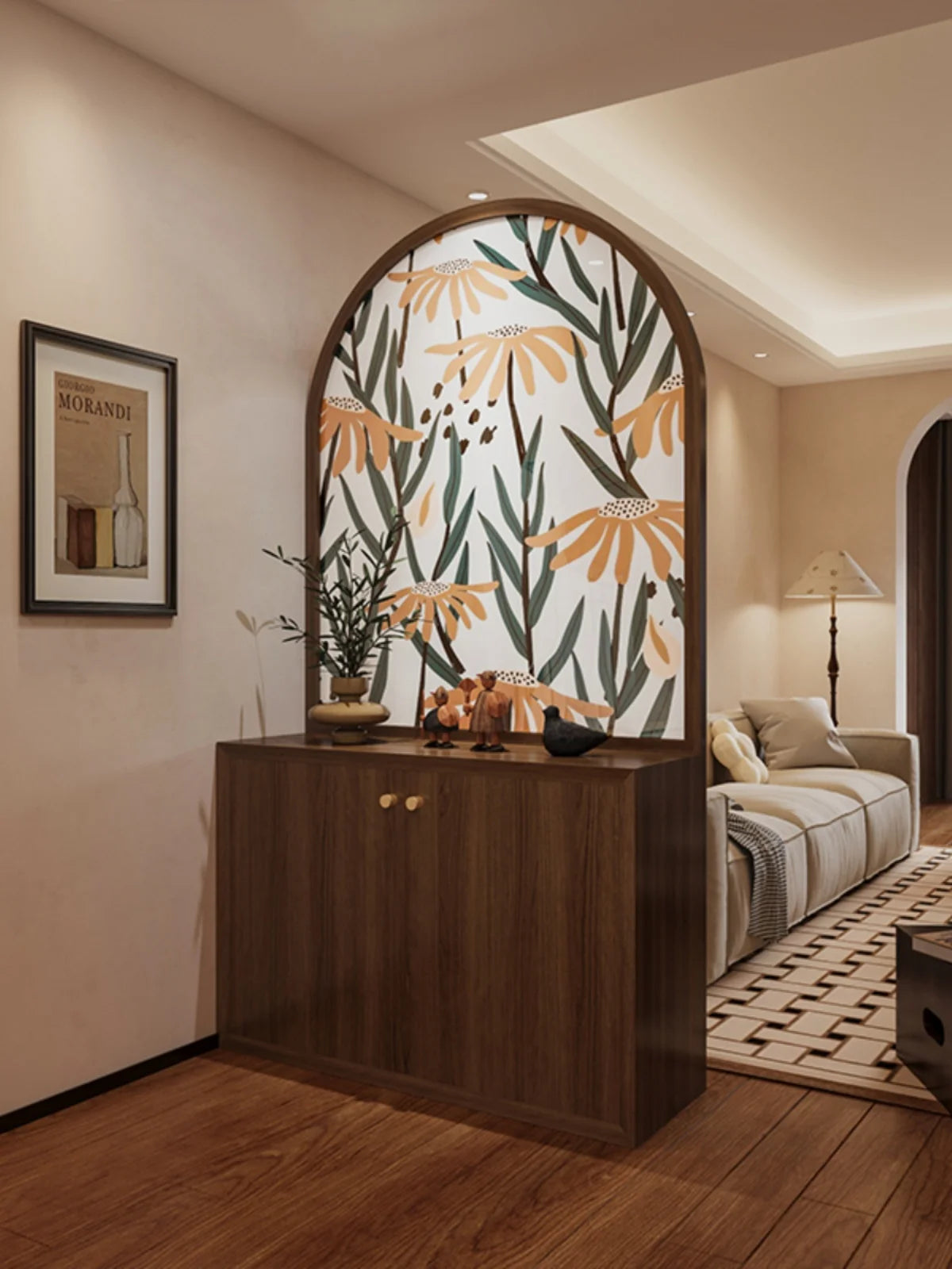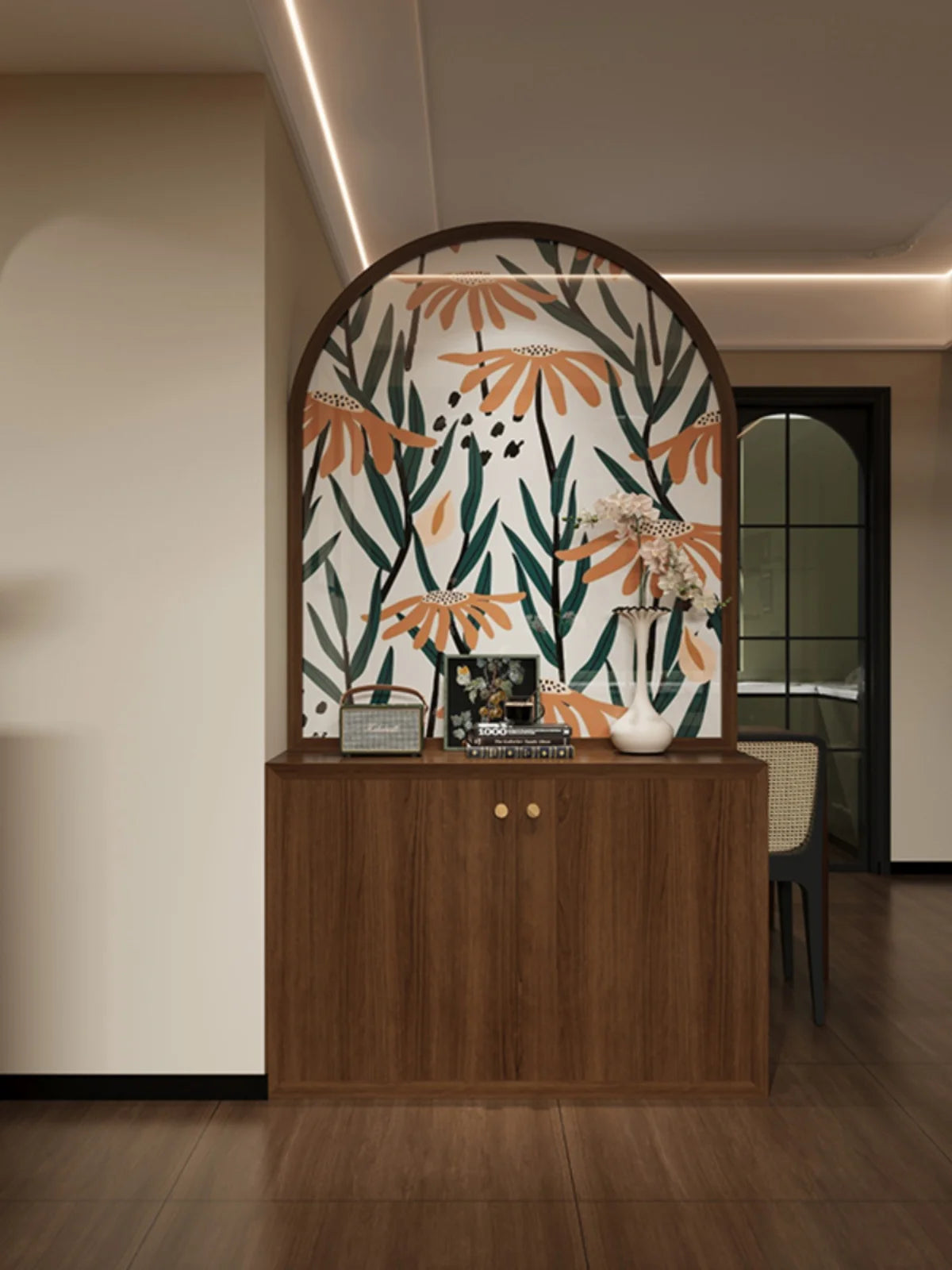 Minimalist modern luxury cream style solid wood shoe cabinet, storage cabinet, screen partition, entrance door, living room, cov