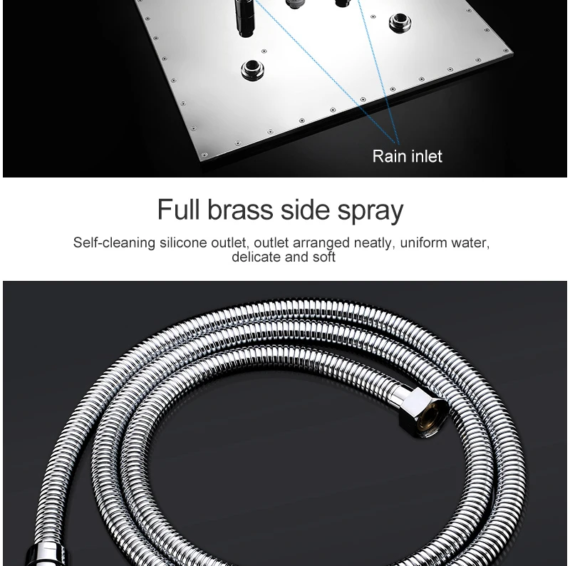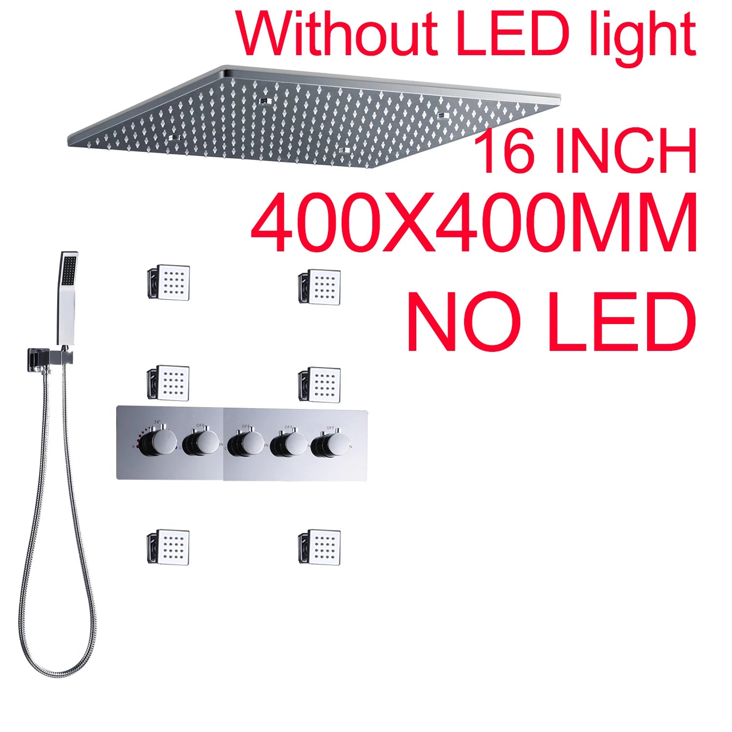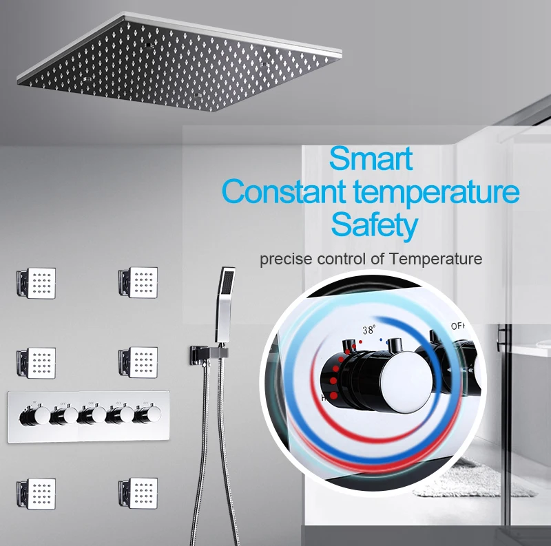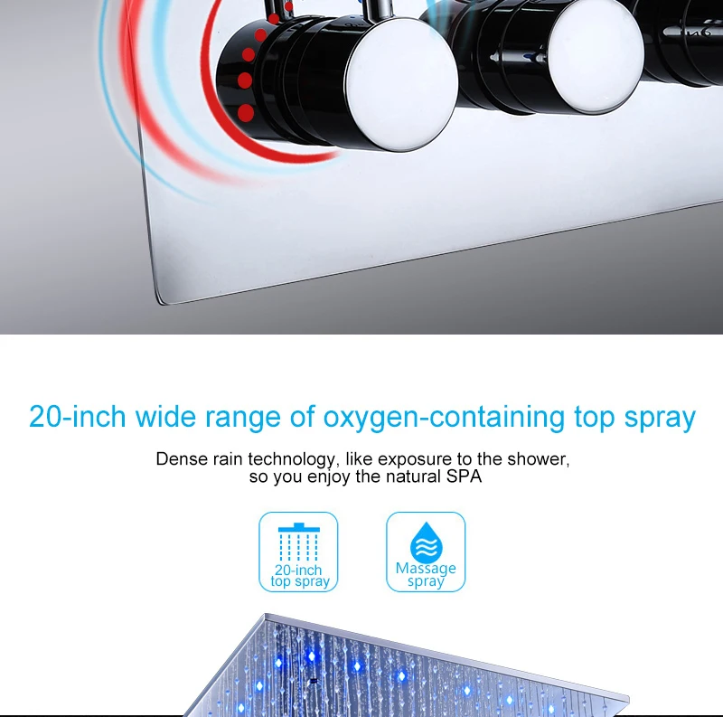 ANTNX 16/20inch 400/500mm LED Shower Head Faucet Set Rain Spray Massage Lateral Jets Thermostatic Mixer Valve Diverter Kit ANTNX.COM