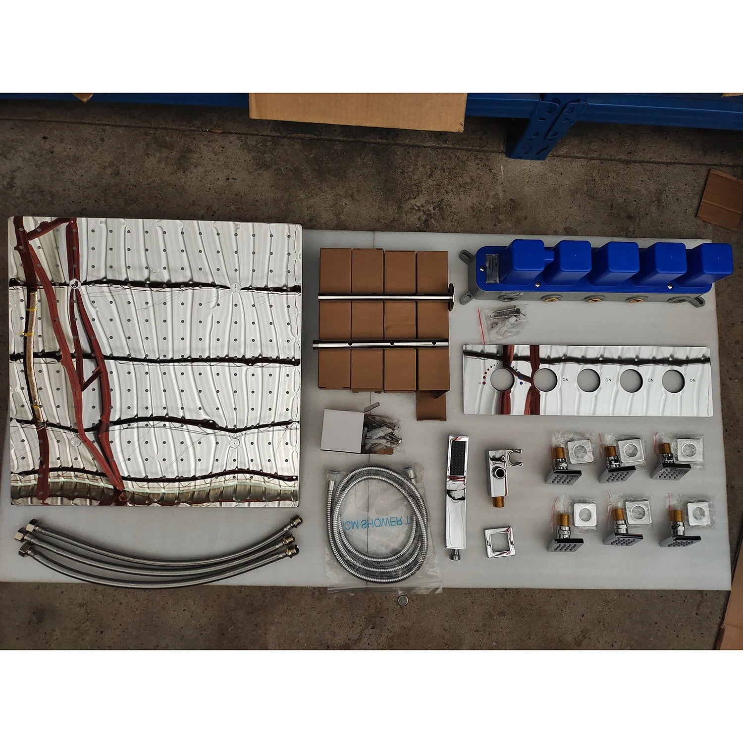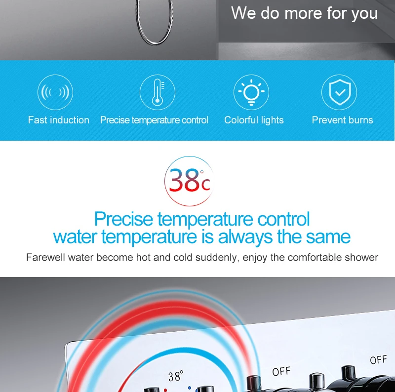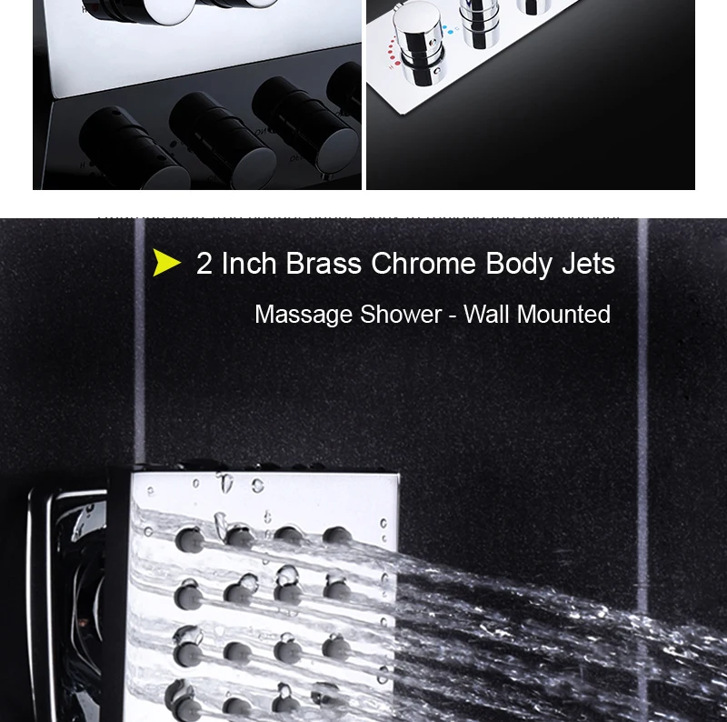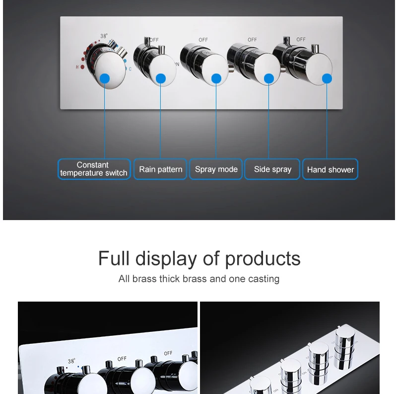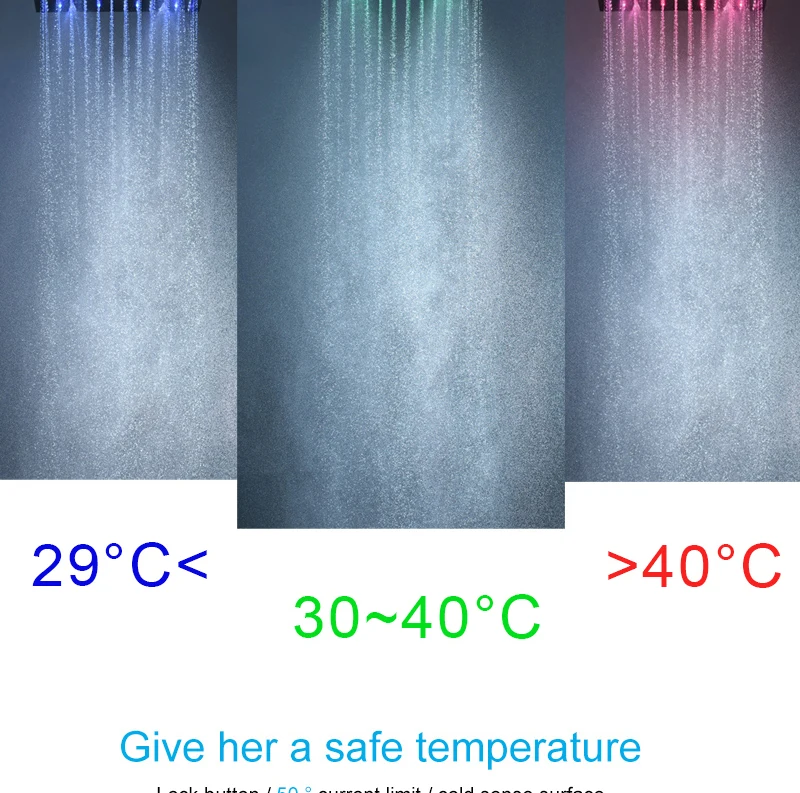 ANTNX 16/20inch 400/500mm LED Shower Head Faucet Set Rain Spray Massage Lateral Jets Thermostatic Mixer Valve Diverter Kit ANTNX.COM
