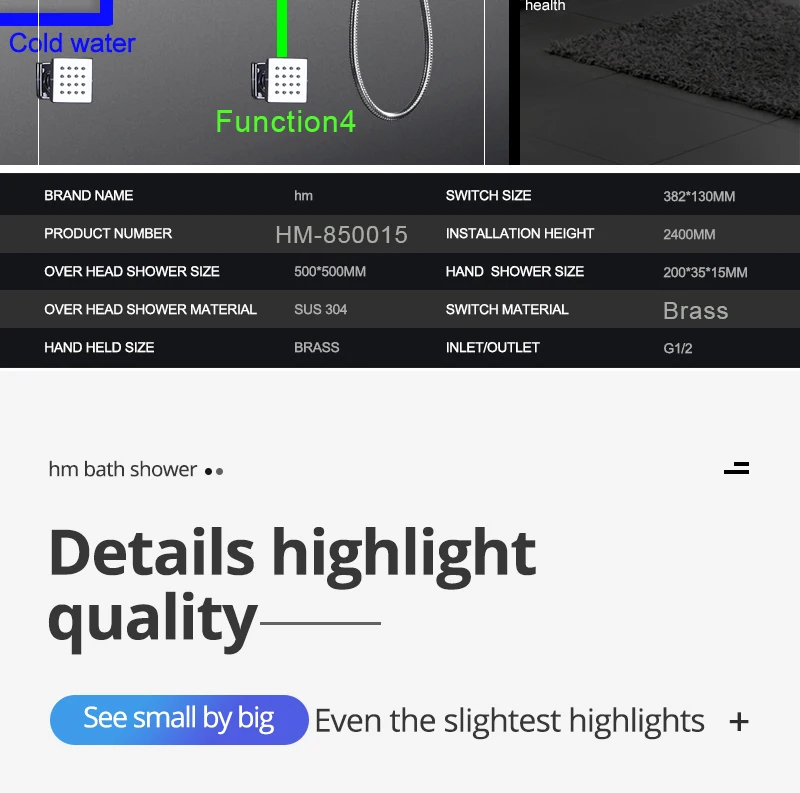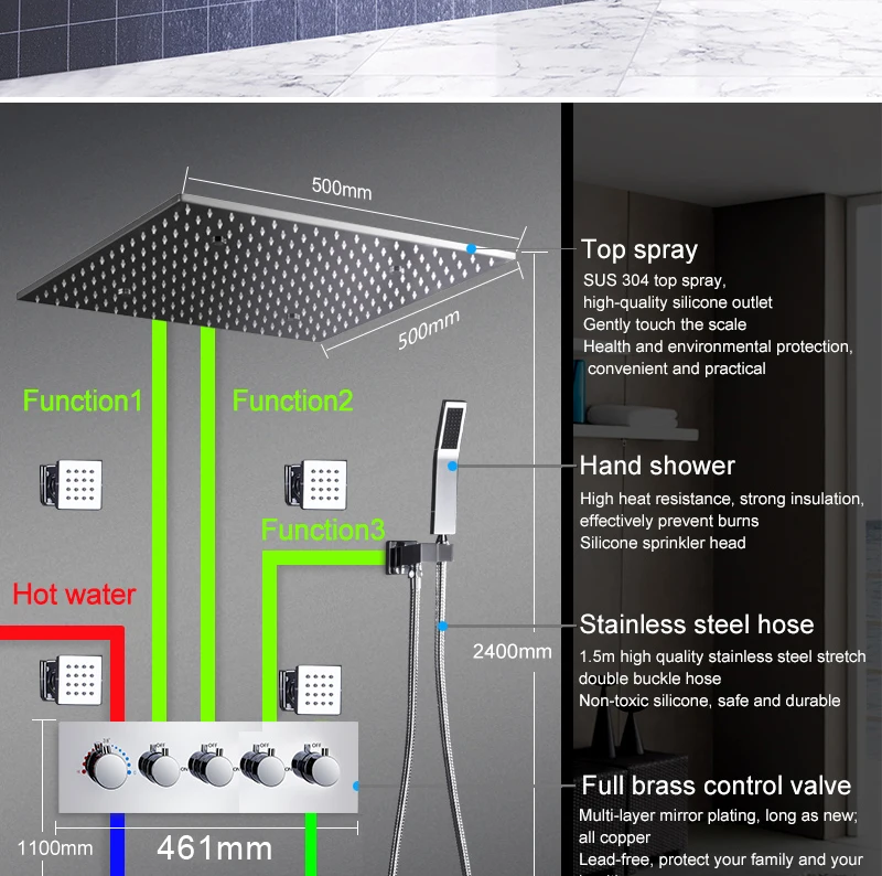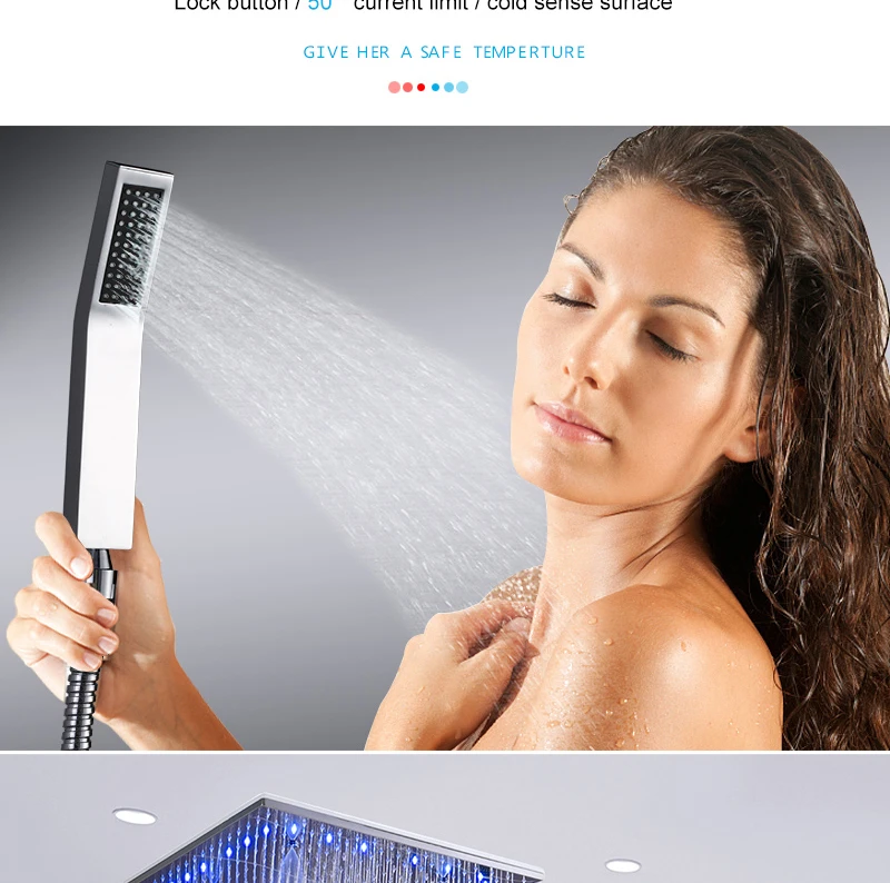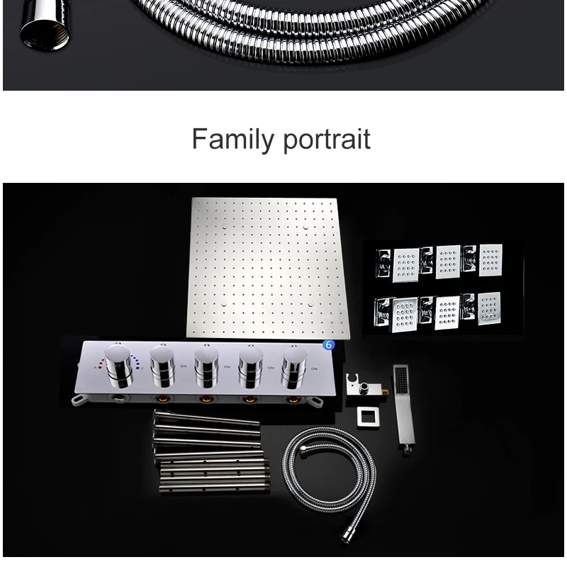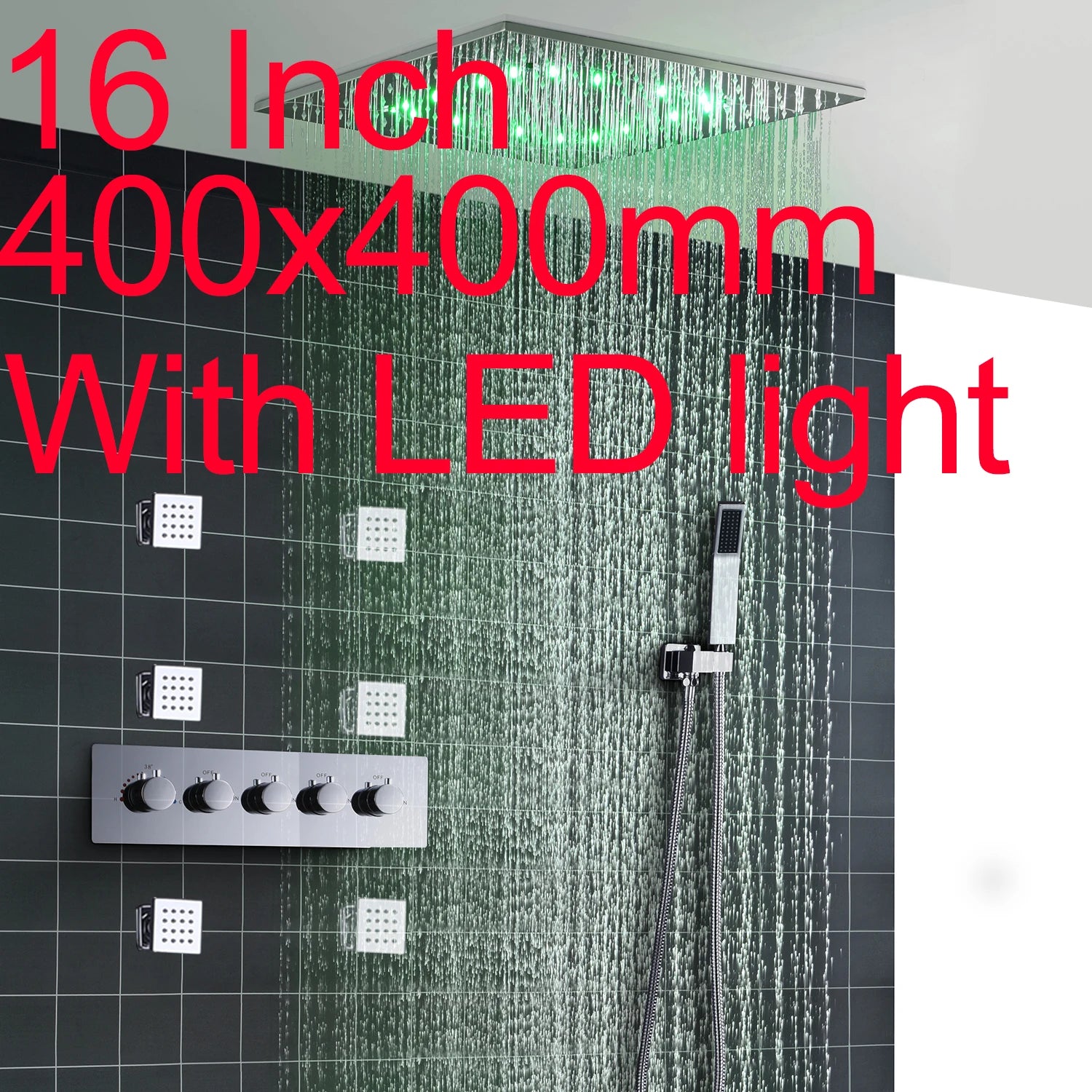 16/20inch 400/500mm LED Shower Head Faucet Set Rain Spray Massage Lateral Jets Thermostatic Mixer Valve Diverter