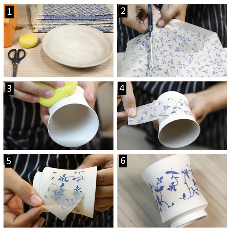 MMOOKA 1PCS New Pottery Ceramics Clay Transfer Paper Glaze Underglaze Flower Paper Jingdezhen Blue and White Porcelain Decal PaperMMOOKA.COM