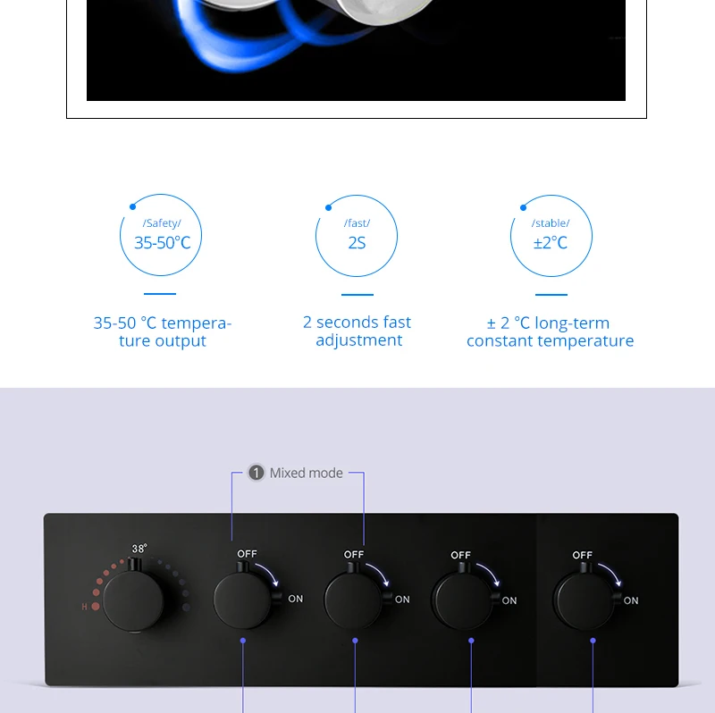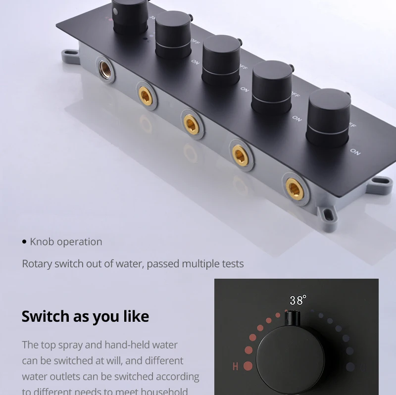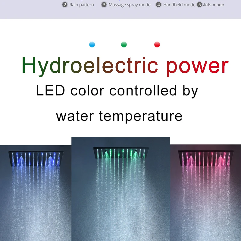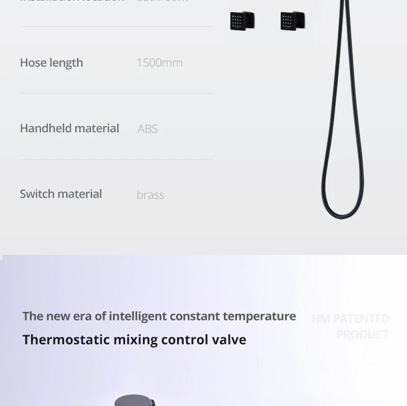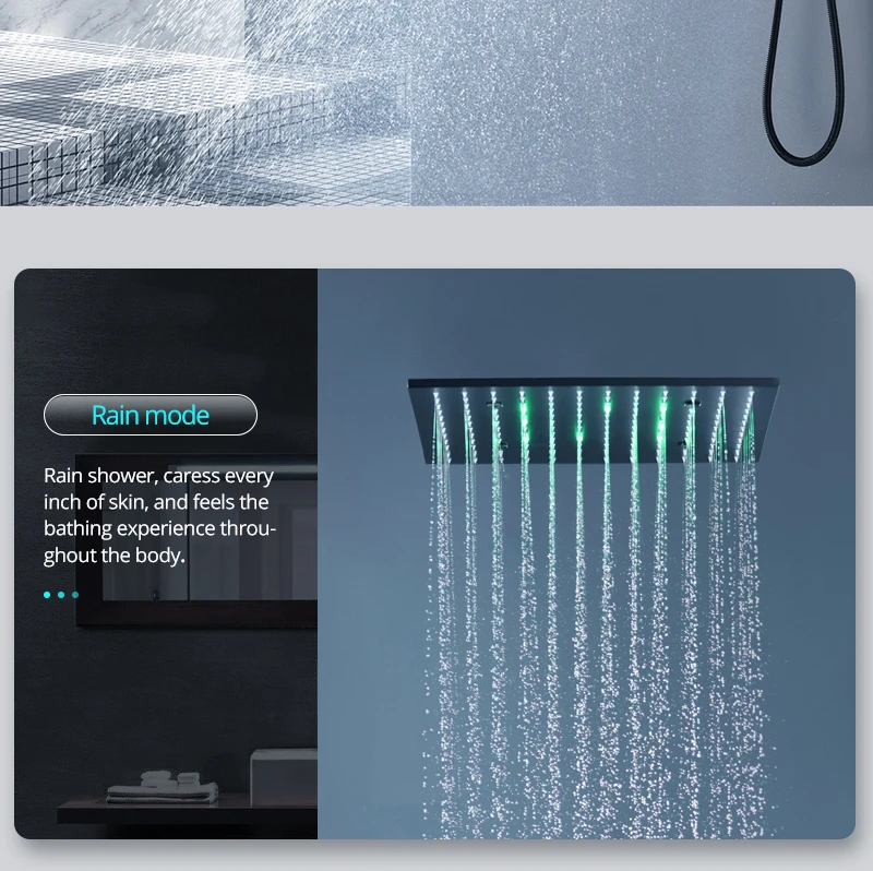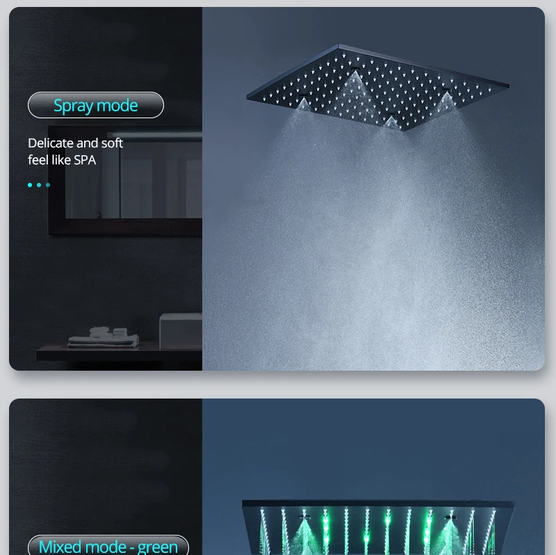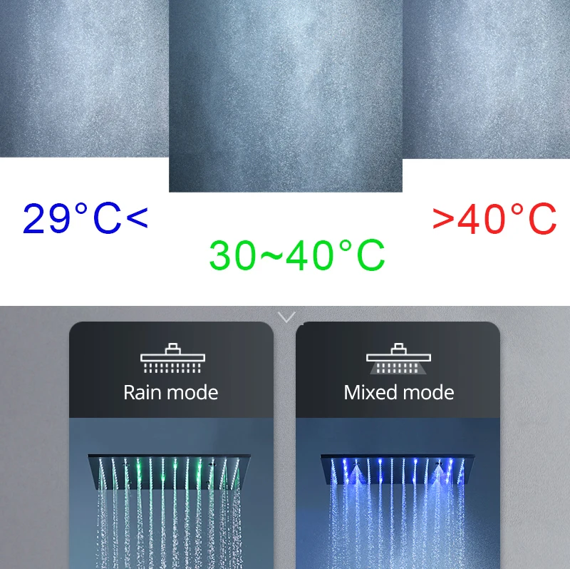 20inches 500mm Rainfall Spray Mist Shower Head Faucet Set Constant Temperature Valve Mixer Diverter Massage Wall Jets System