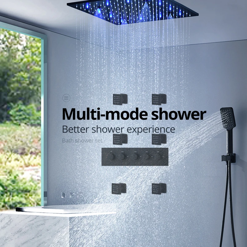 ANTNX 20inches 500mm Rainfall Spray Mist Shower Head Faucet Set Constant Temperature Valve Mixer Diverter Massage Wall Jets System ANTNX.COM