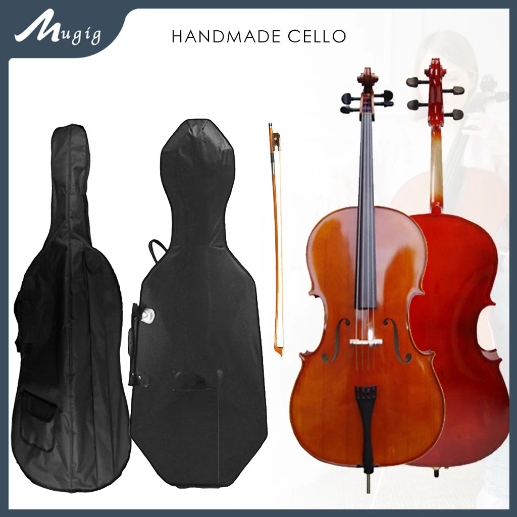 MMOOKA 4/4 3/4 1/2 1/4 1/8 Acoustic Cello Pure Handmade Solidwood Cellos Violoncelo チェロ виолончель With Carry Gig Bag Bow Bridge Case
