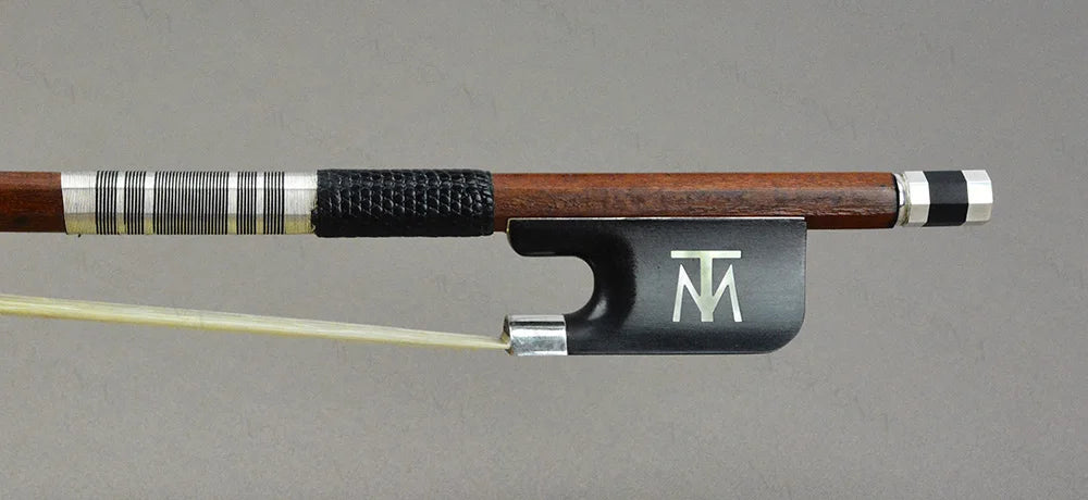 The horsehair is from Mongolia at top level in natural (non-bleached) condition. The frog and screw are made of high-density ebony and pure silver. The slide is well-selected colorful mother of pearl is very shinning. Comfortable and textured leather grip, graceful special-designed Rare winding as you can see from the actual pictures. Hope you can get the beauty and subtlety of this bow.