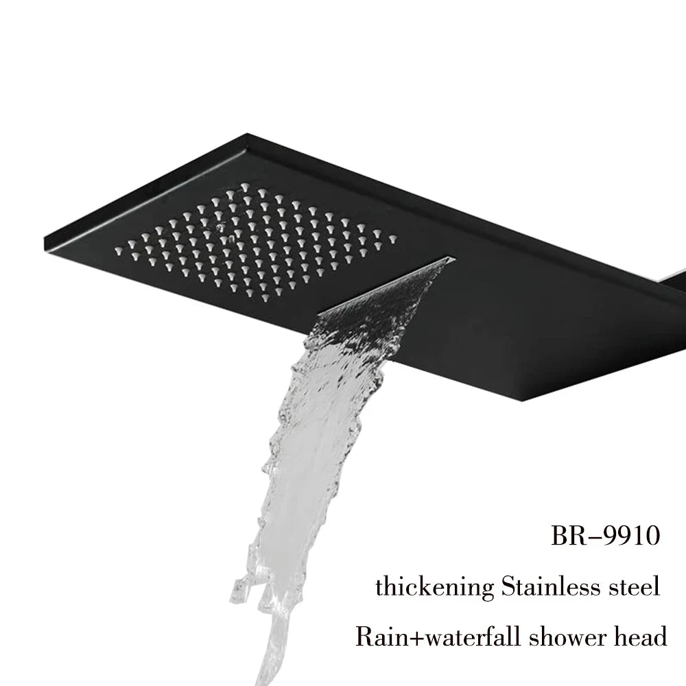 ANTNX BAKALA Matte Black Stainless Steel Shower Head Rainfall Shower Head With Waterfall Shower Wall Mounted ANTNX.COM