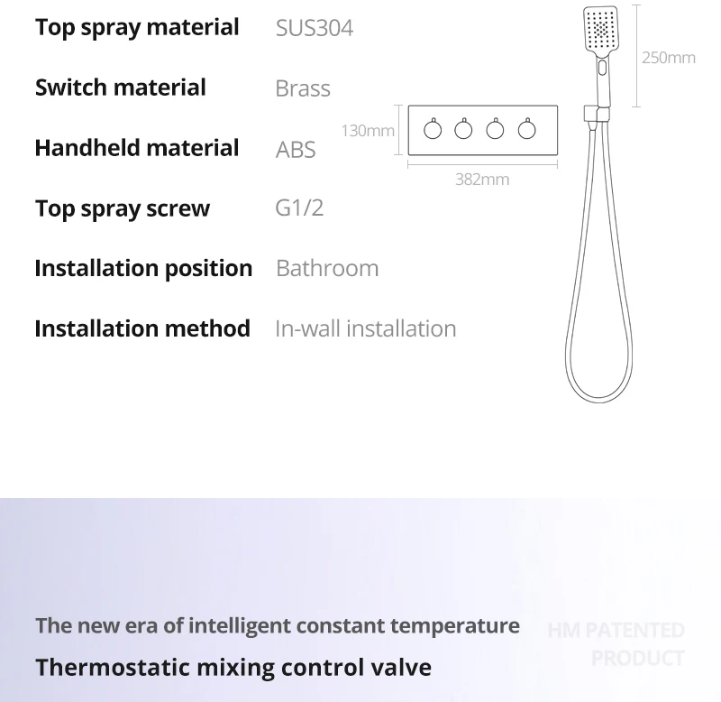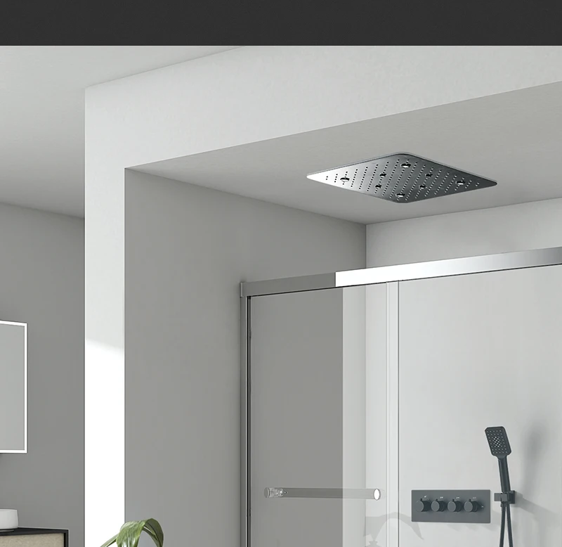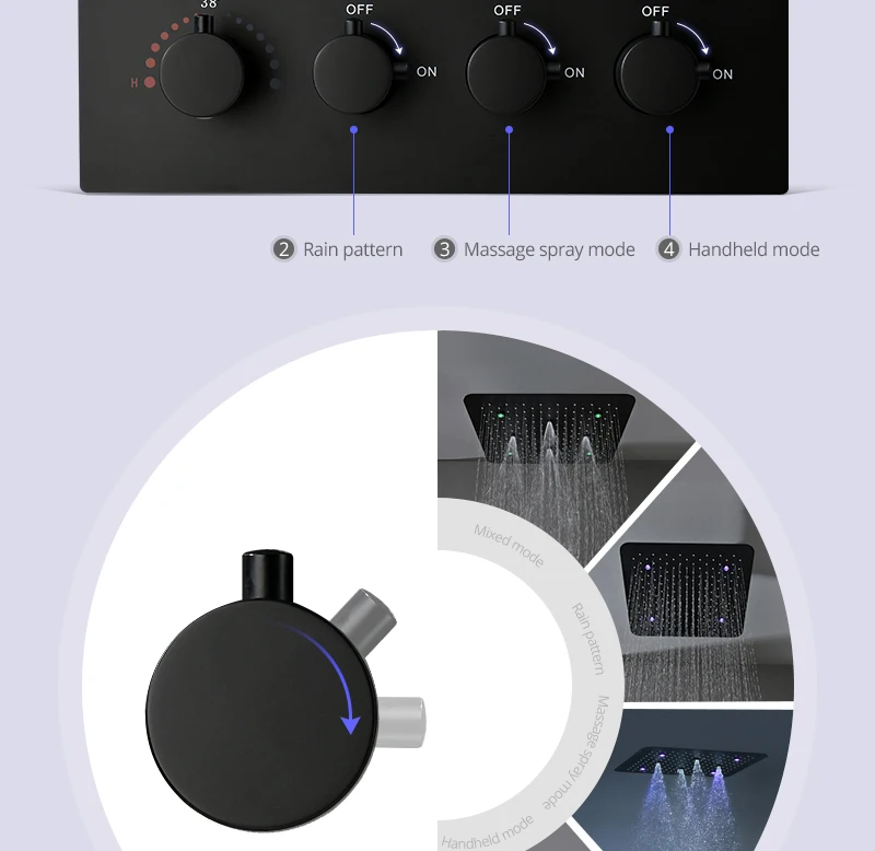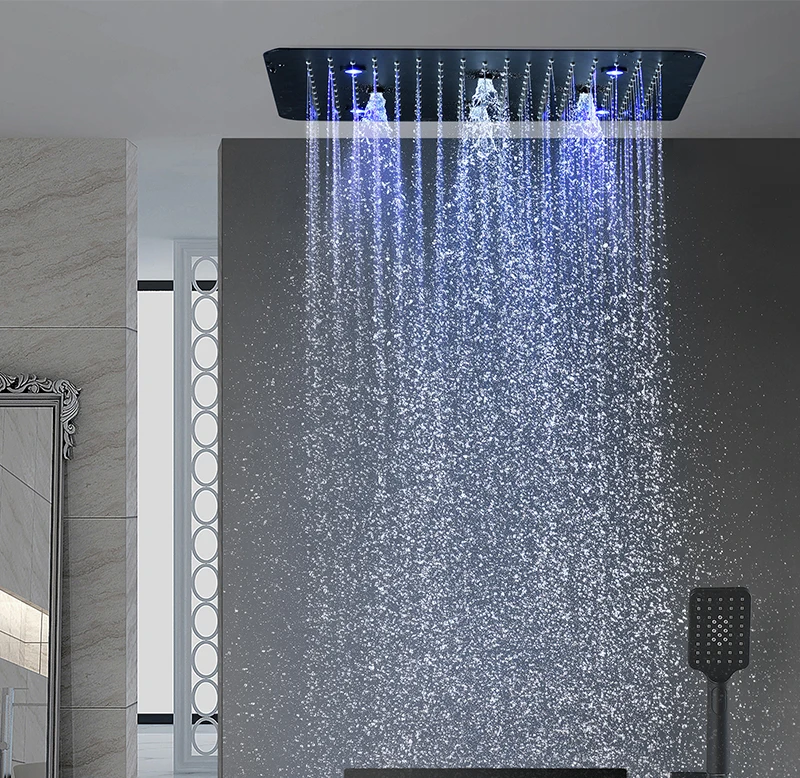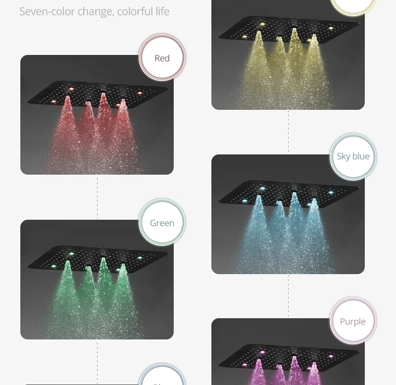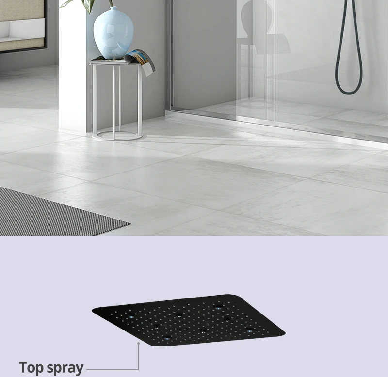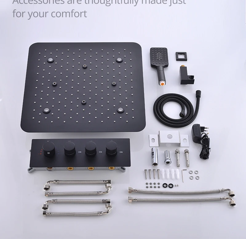 ANTNX Bathroom Accessoires 20inches 500mm Black Shower Head Panel Thermostatic Mixer ValveSystem Rainfall Steam Spray SPA Shower set ANTNX.COM