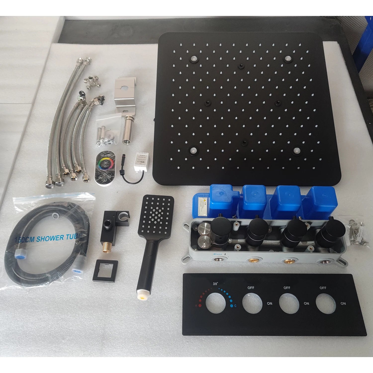 Bathroom Accessoires 20inches 500mm Black Shower Head Panel Thermostatic Mixer ValveSystem Rainfall Steam Spray SPA Shower set