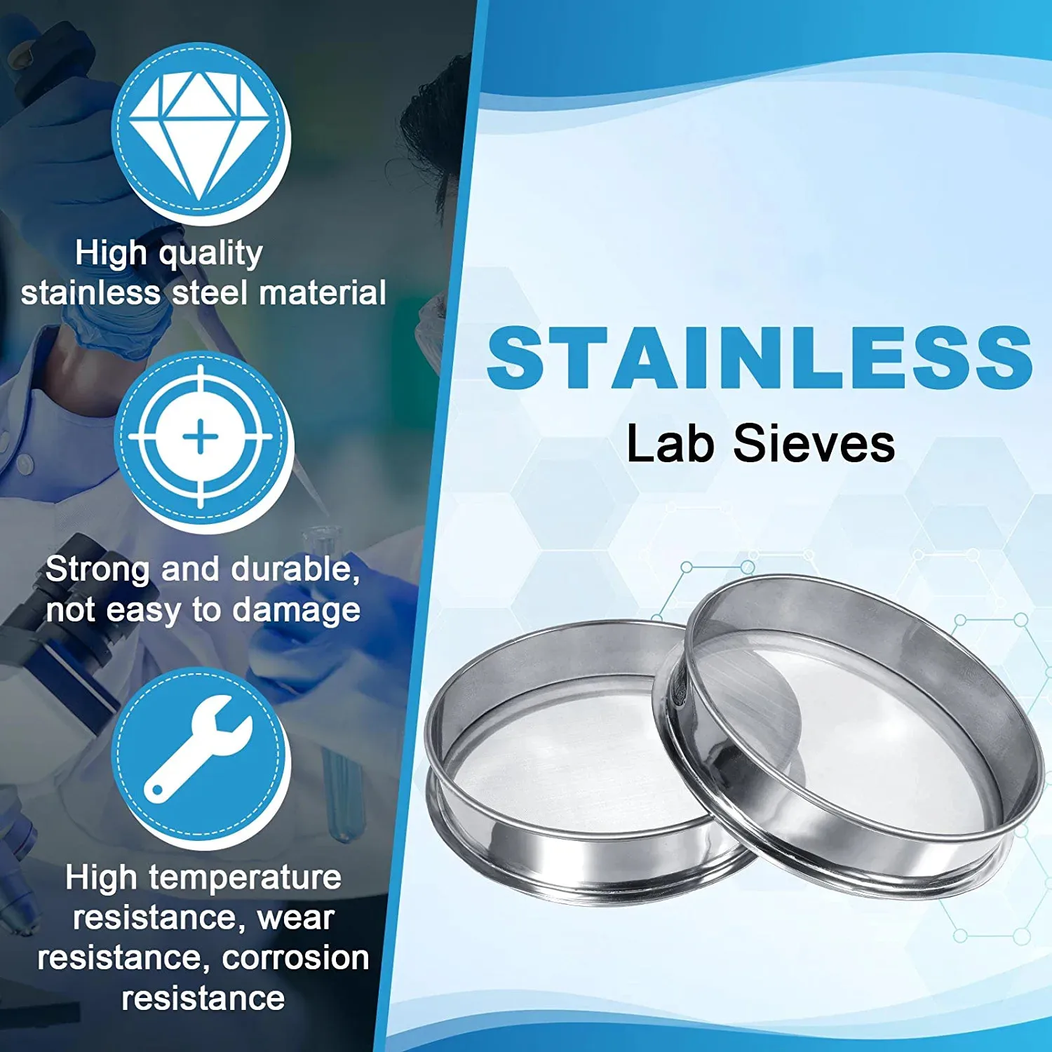 Ergonomic Design - The lab mesh sieve can be stacked to use for classification filter; And the sieve frame tightly secure wire cloth, a great lab sieve choice