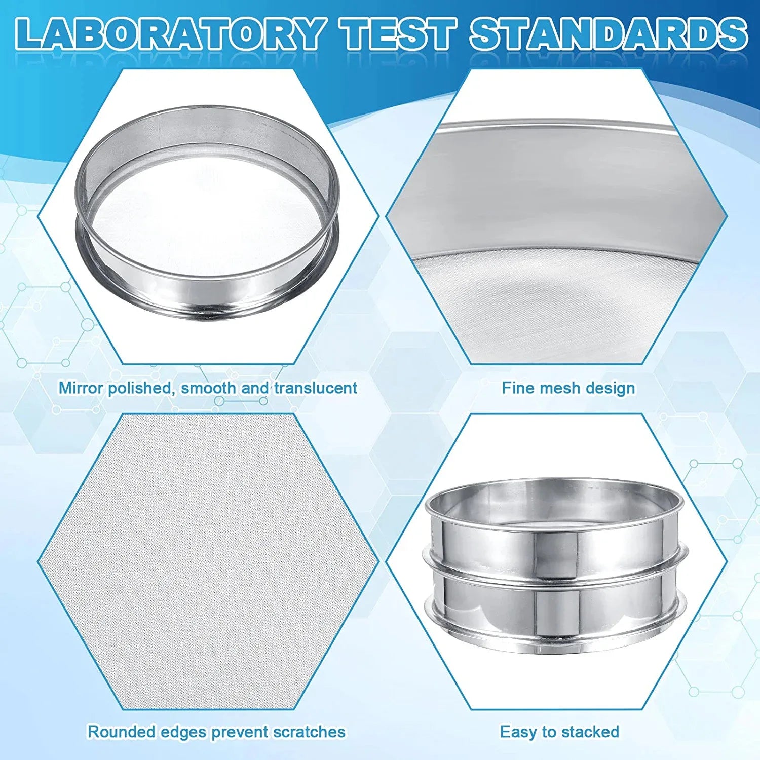 Wide Application - mesh sieve suitable for fruit, dehydrated vegetable powder, medicine, tea, grain, aluminum, zinc and other metal ash, screws, plastic, sand, soil and so on; This standard testing sieve can be for laboratory, farm and home filtration