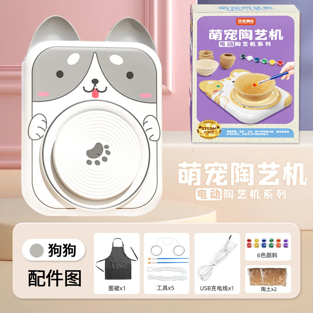 MMOOKA MMOOKA Cute Pet Pottery Machine Toy Children's Handmade DIY Electric Non Burning Clay Pulling Tool Set Anti Drop Material WearMMOOKA.COM