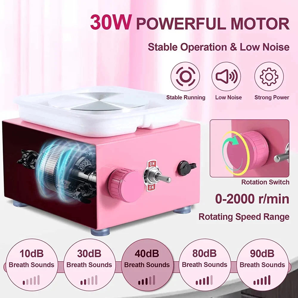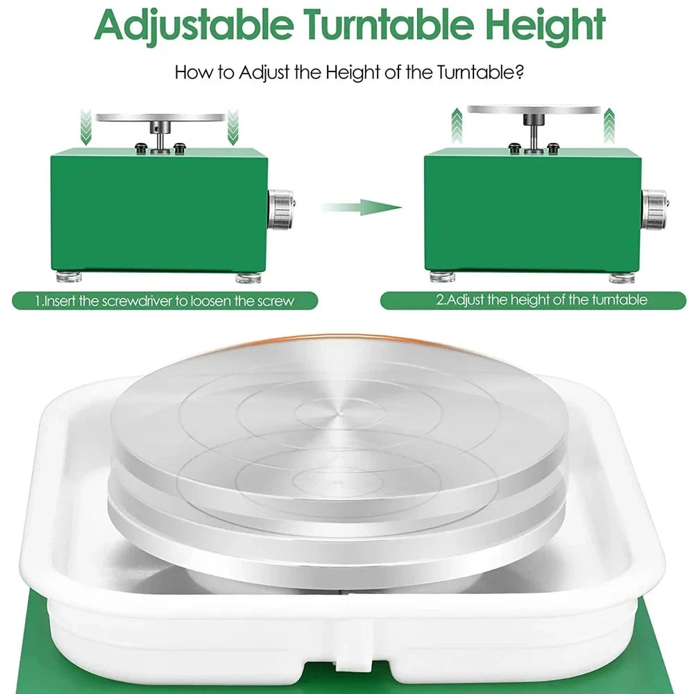 【Strong Motor & Low Noise】: Adopting to high quality motor and the wheel rotates smoothly. 30w motor, 0-2000r/min rotating speed, less than 60dB, low noise. Adjustable speed and turntable height, easy operation, giving you a quiet creation experience.