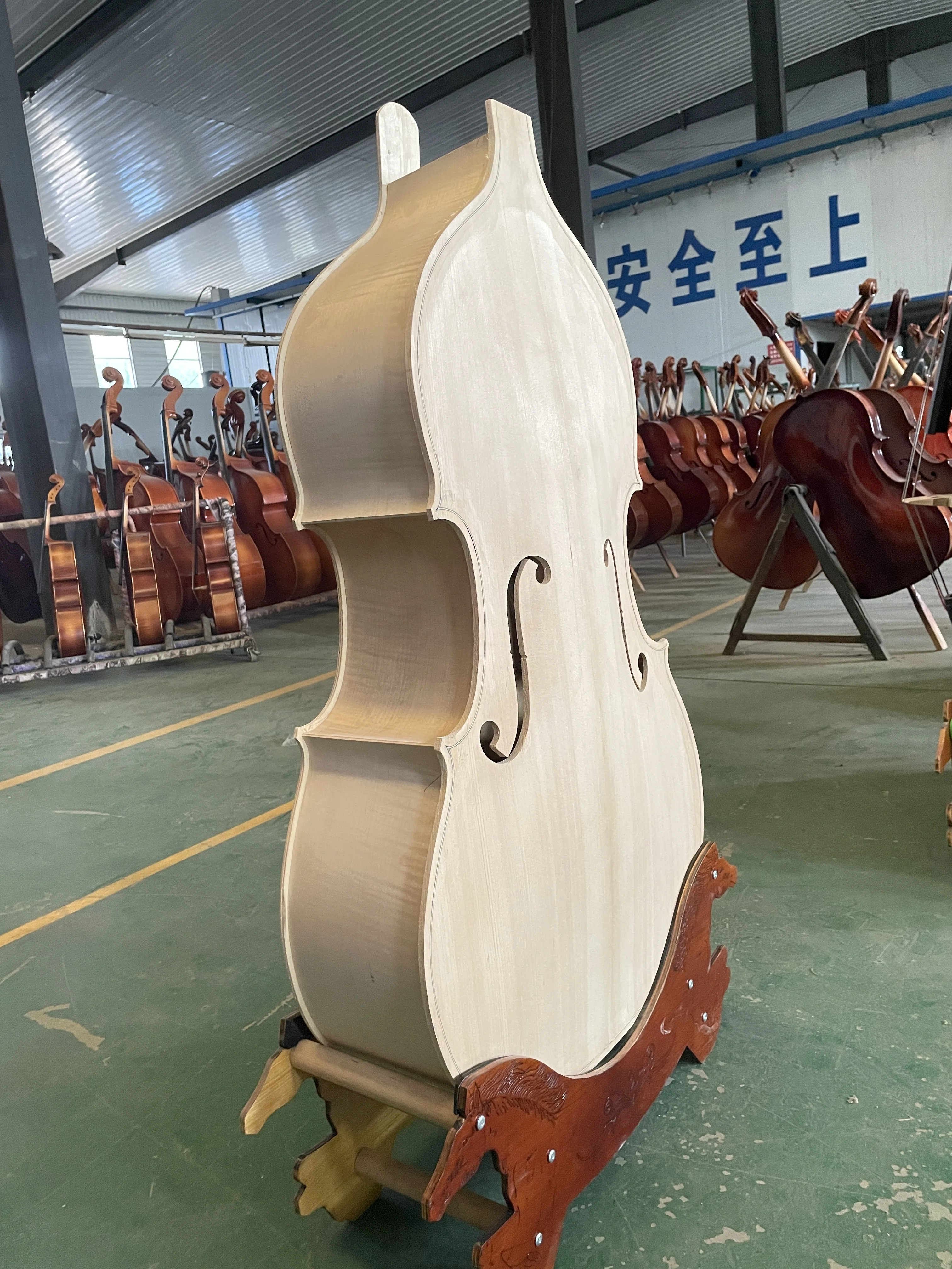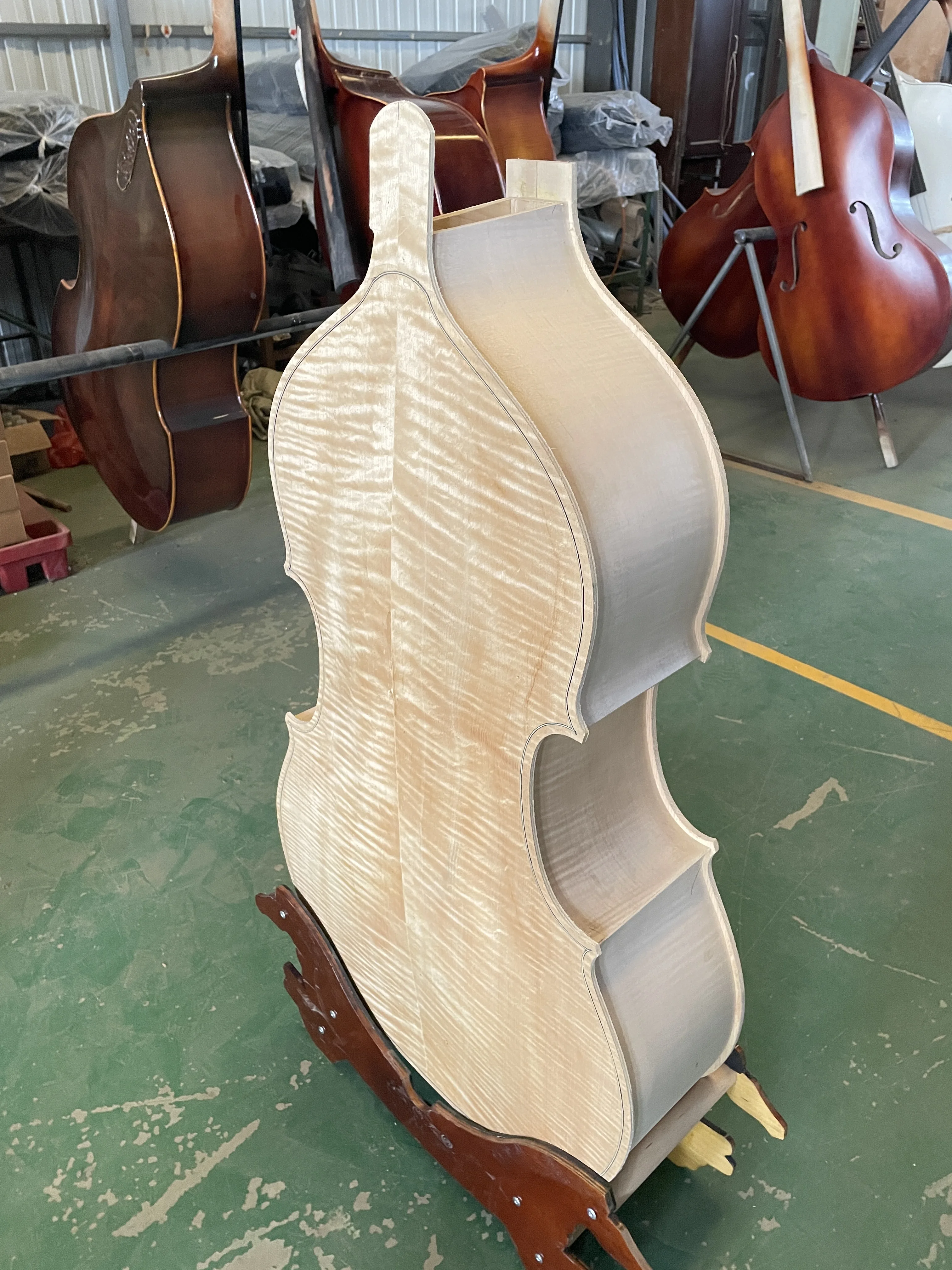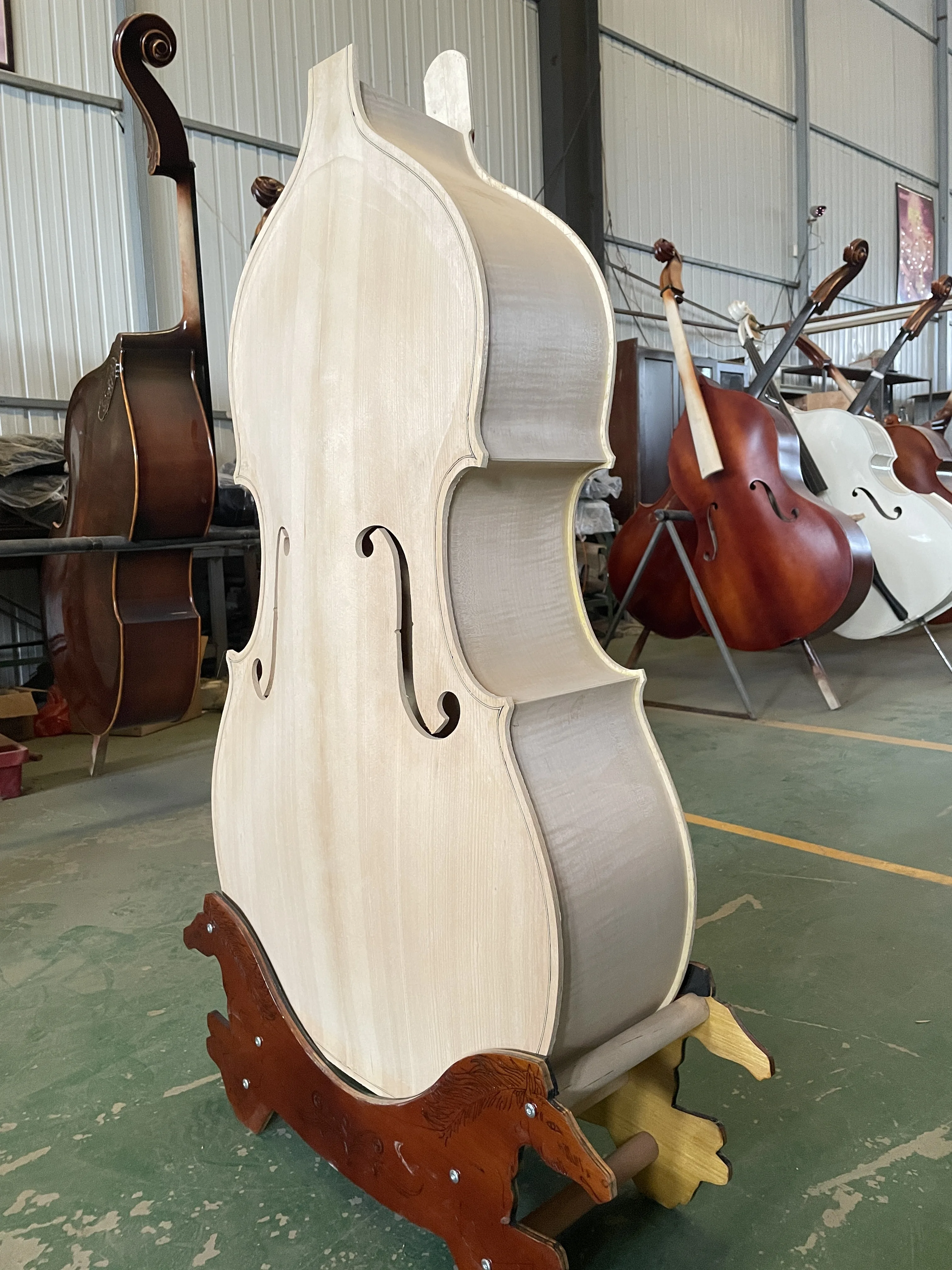 MMOOKA Fully Handcrafted White upright Bass, 3/4 Solid Spruce Top Plywood, Back Flame Maple, larger than Cello