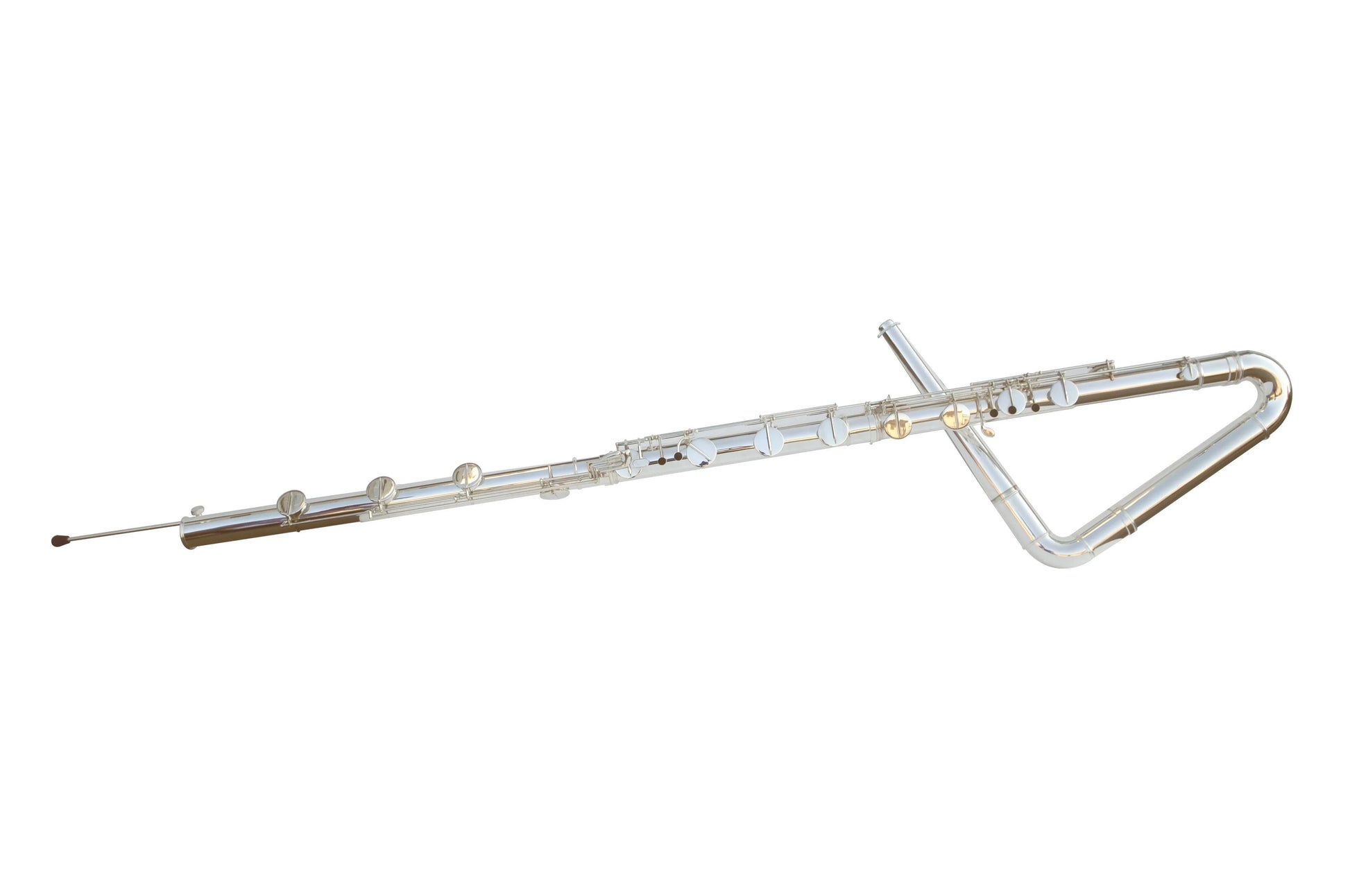 The contrabass flute LKFL-2881SE is cupronickel body, silver plated, soldered tonehole