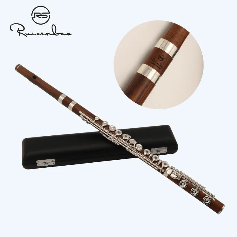MMOOKA High grade French rosewood 17-key open silver plated flute excellent timbre