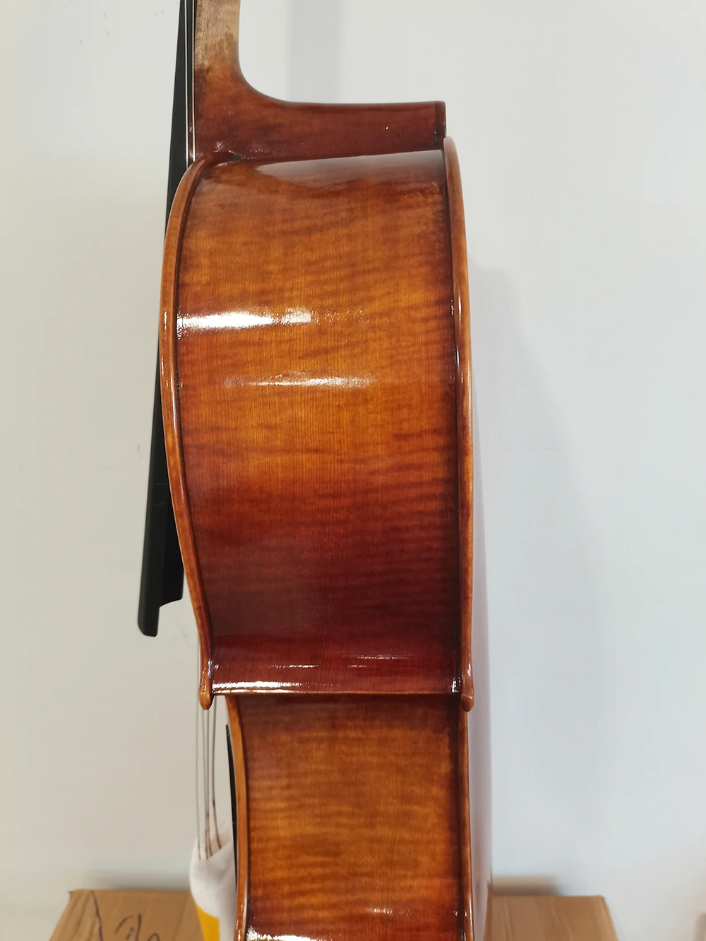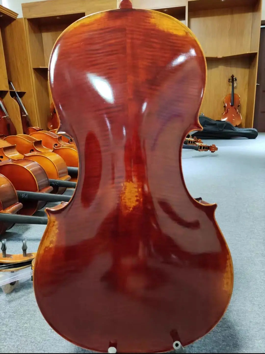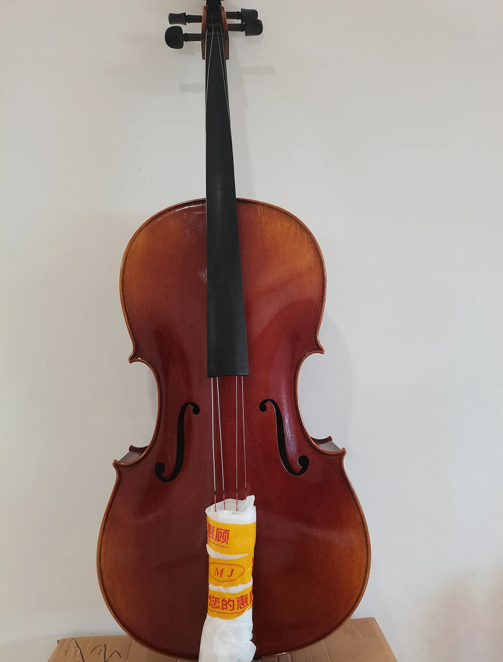 This product is a solid wood cello, made of maple back and spruce.