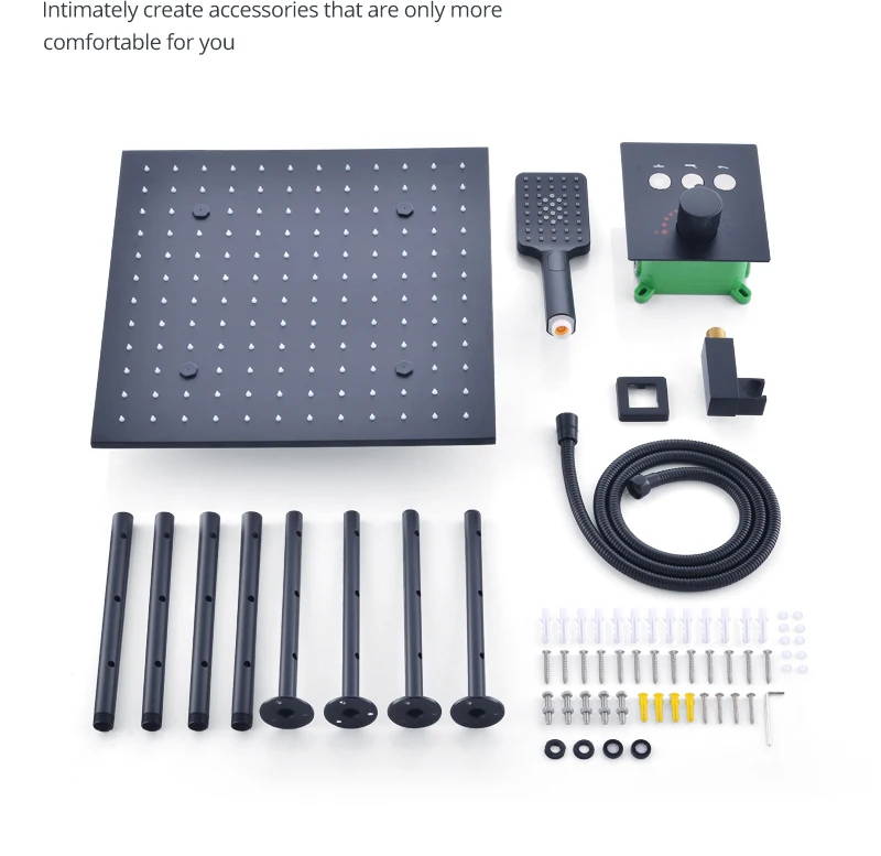 MMOOKA High Quality Plating Matt Black LED 16/20inch Shower Head Set Tap Button Constant Temperature Valve Mixer Switch Faucet MMOOKA.COM