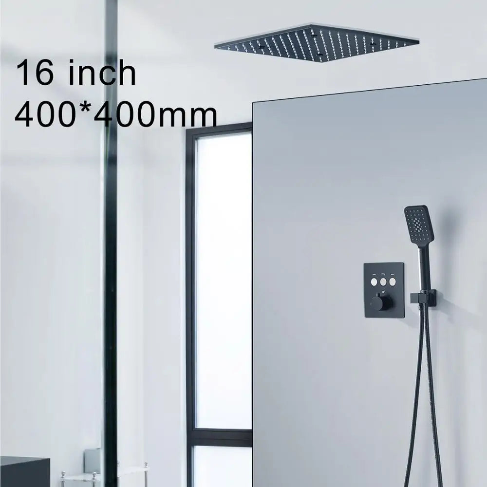 High Quality Plating Matt Black LED 16/20inch Shower Head Set Tap Button Constant Temperature Valve Mixer Switch Faucet