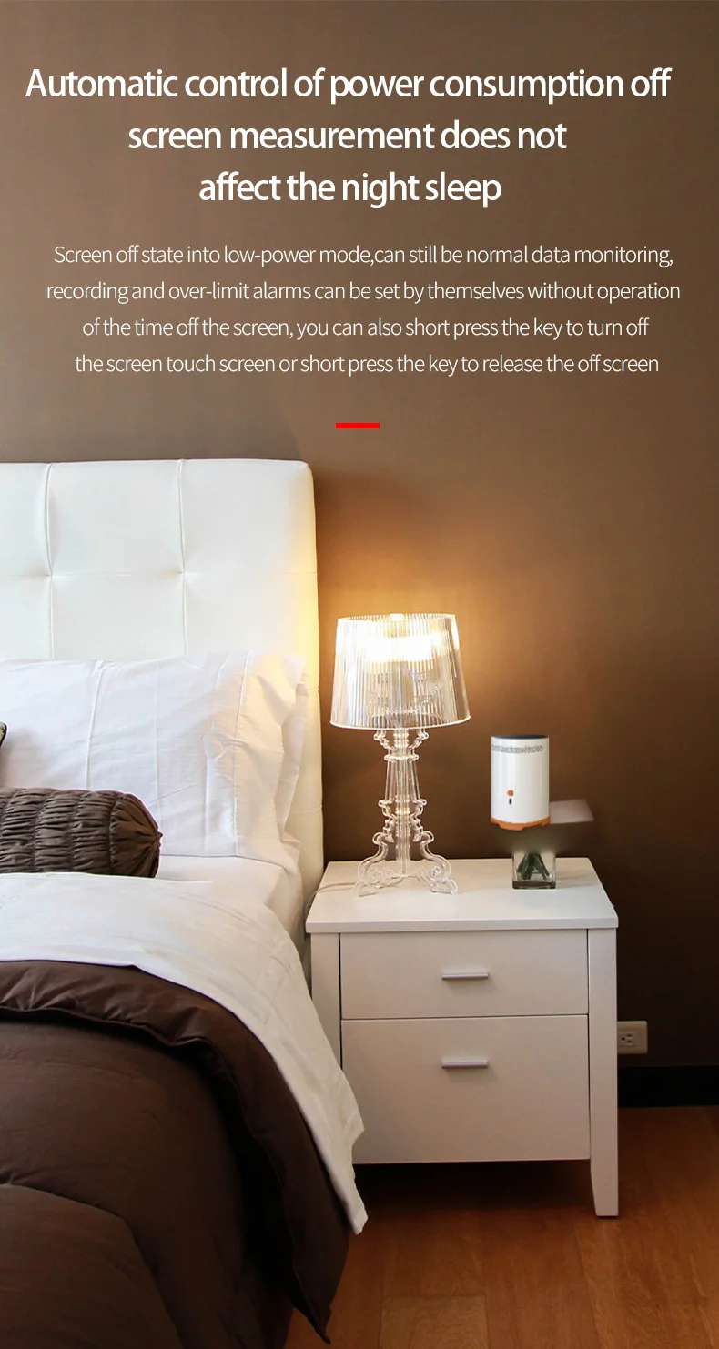In the screen sleep state, enter the low power mode, but can still perform normal data monitoring, data recording and radon concentration alarm.
