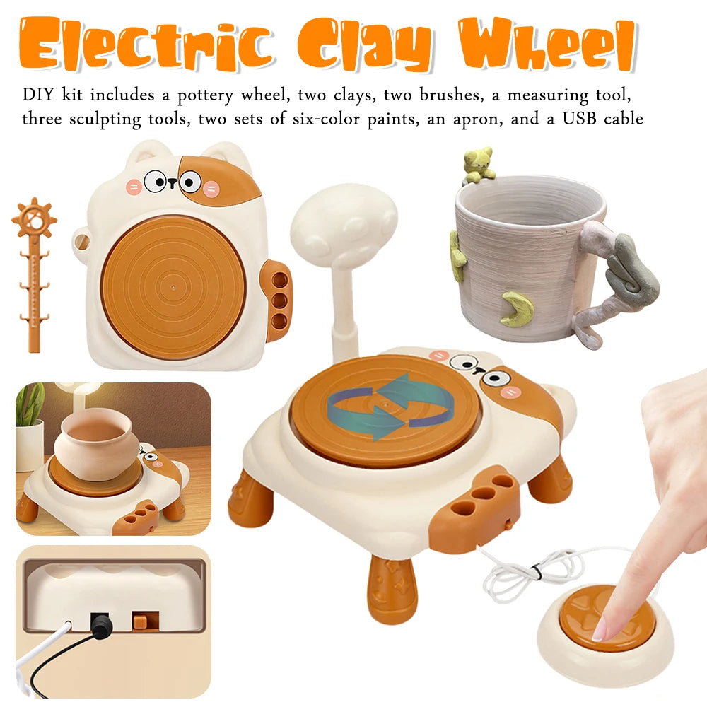 MMOOKA Kids Pottery Wheel Kit Cute Animal USB Powered Art Set for Creative DIY Crafting with Tools Birthday Gift for Ages 3 and UpMMOOKA.COM