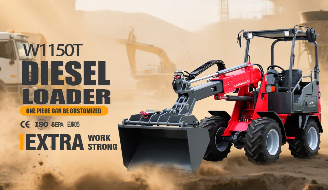 Landawrd Diesel Loader W1150T is a mini wheel telescopic loader based on the W1150 model. It offers two cab options: canopy and closed cab. The W1150T is designed to meet Euro 5 and EPA emission standards and offers a variety of engine options to meet different needs. Its hydrostatic system ensures stable power and comfortable operation. With its compact size, the Front Loaders W1150T is ideal for working in tight spaces and is a versatile choice for a variety of tasks.
