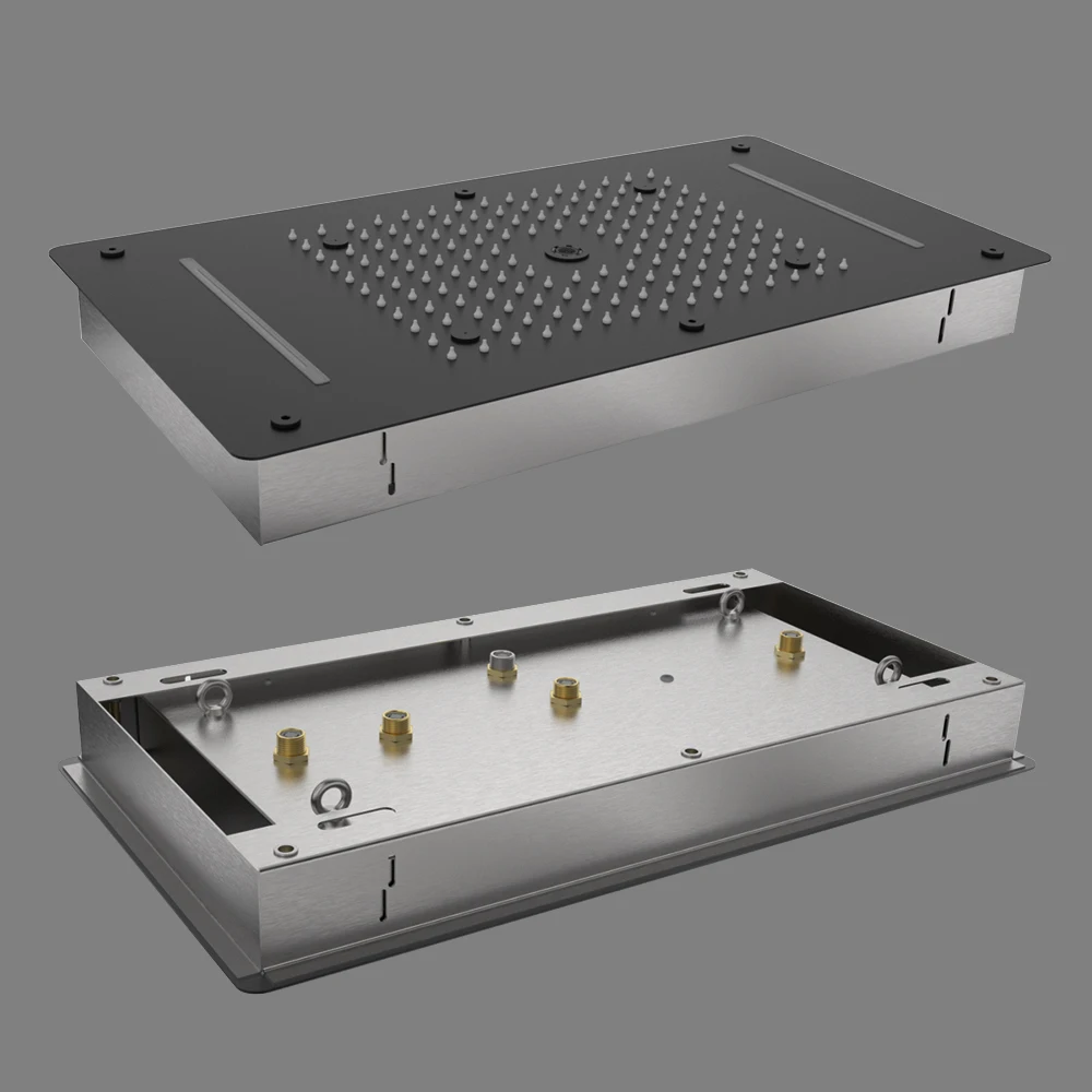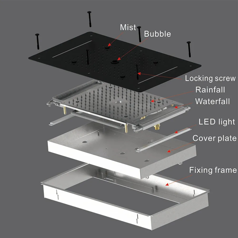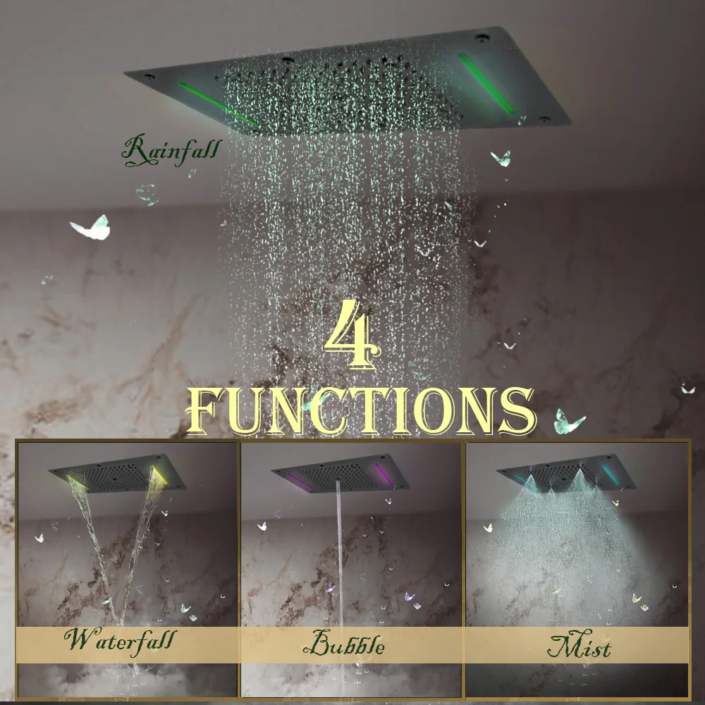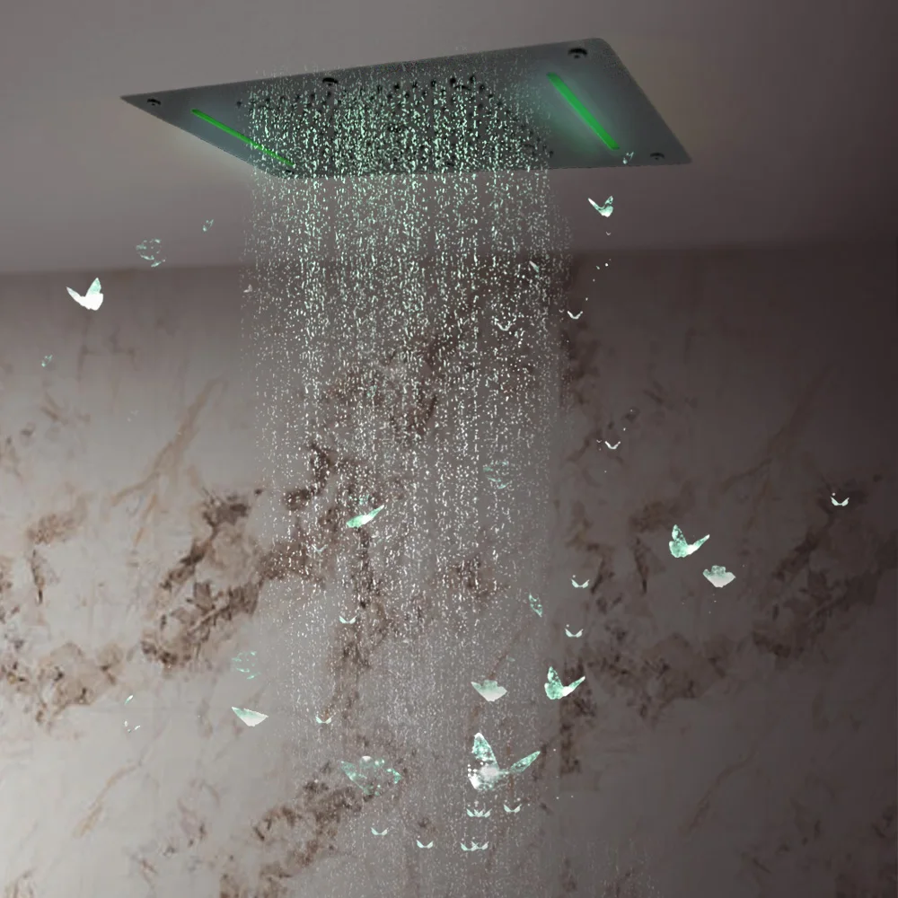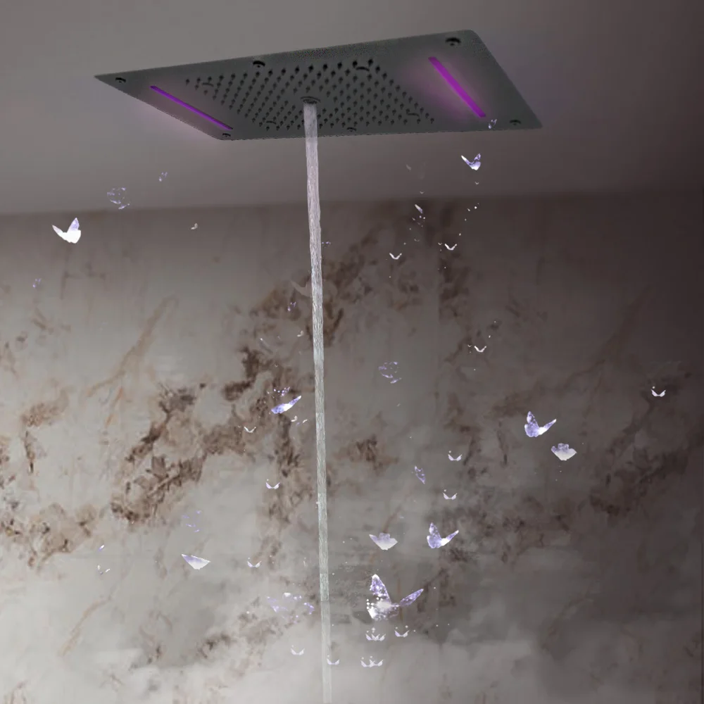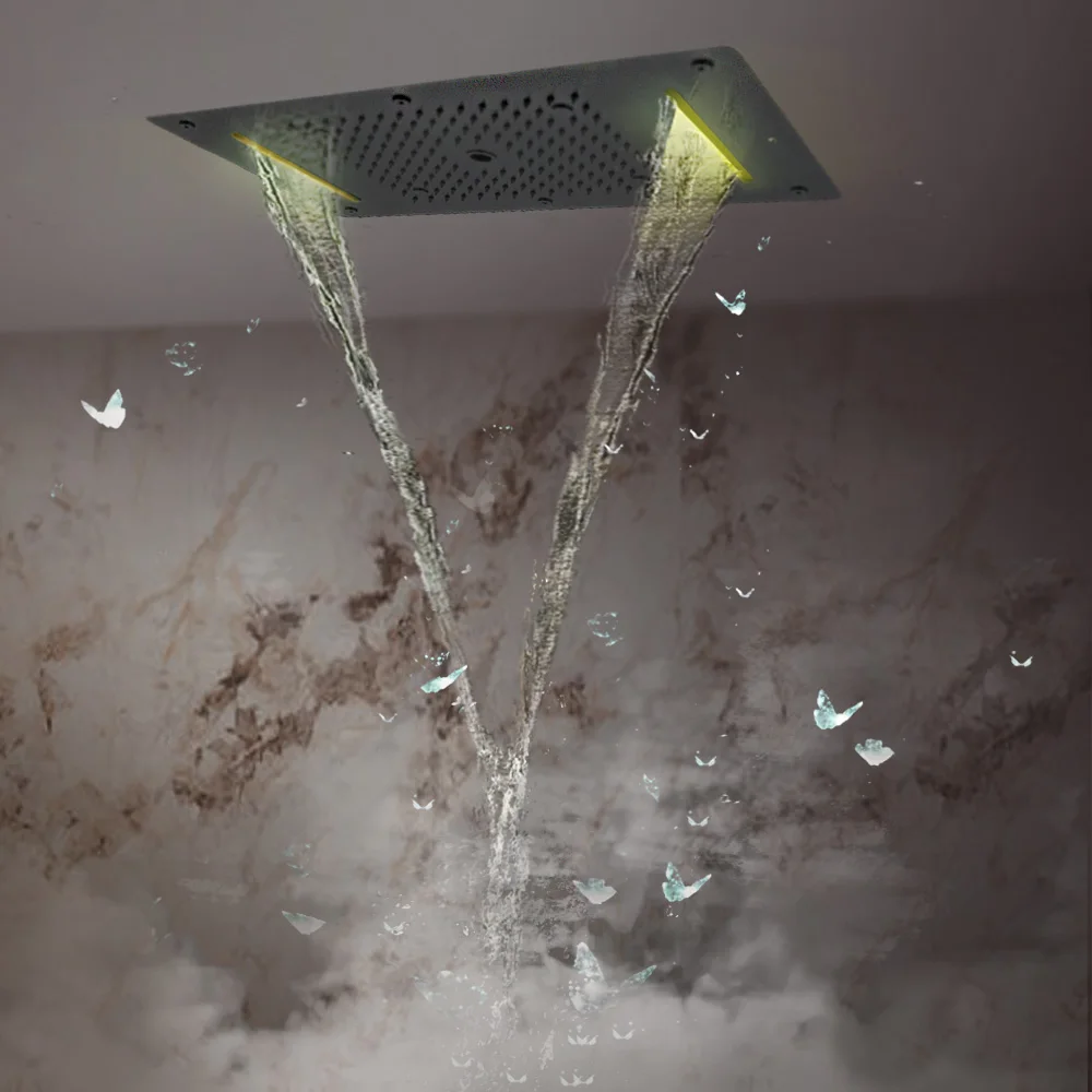 MMOOKA LED Ceiling Shower Head 27.56"x14.96" Matte Black Embedded Showerhead Massage Rainfall Waterfall Bubble Mist Stainless Steel MMOOKA.COM
