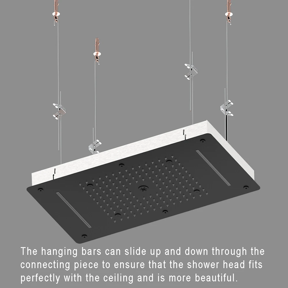 The hanging bars can slide up and down through the connecting piece to ensure that the shower head fits perfectly with the ceiling and is more beautiful.