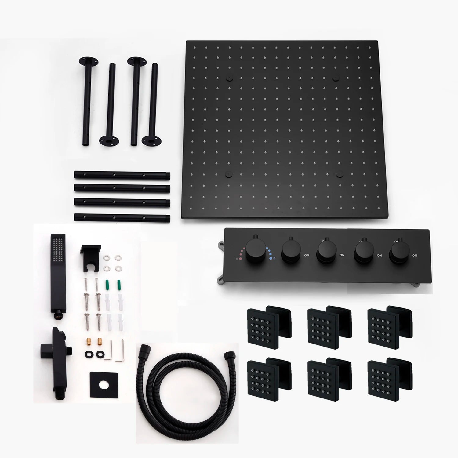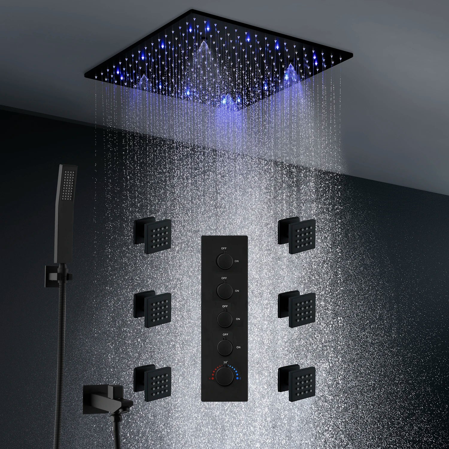 Luxury 16/20 Inch 400/500mm Rainfall Mist Spray LED Shower Head Set Constant Temperature Valve Mixer With Side Massage Jets
