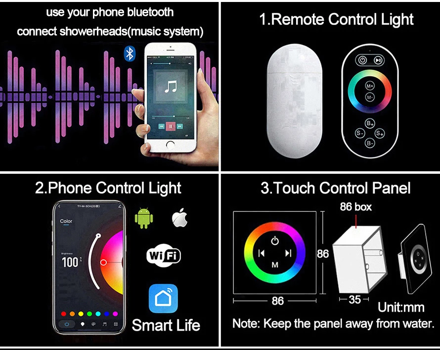 ANTNX M Boenn 4 Functions Shower System Set Embedded Ceiling 638*338mm LED Shower Head Rainfall Bathroom Faucets Thermostatic Diverter ANTNX.COM